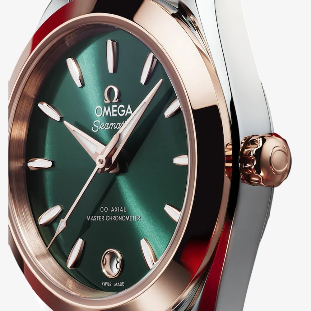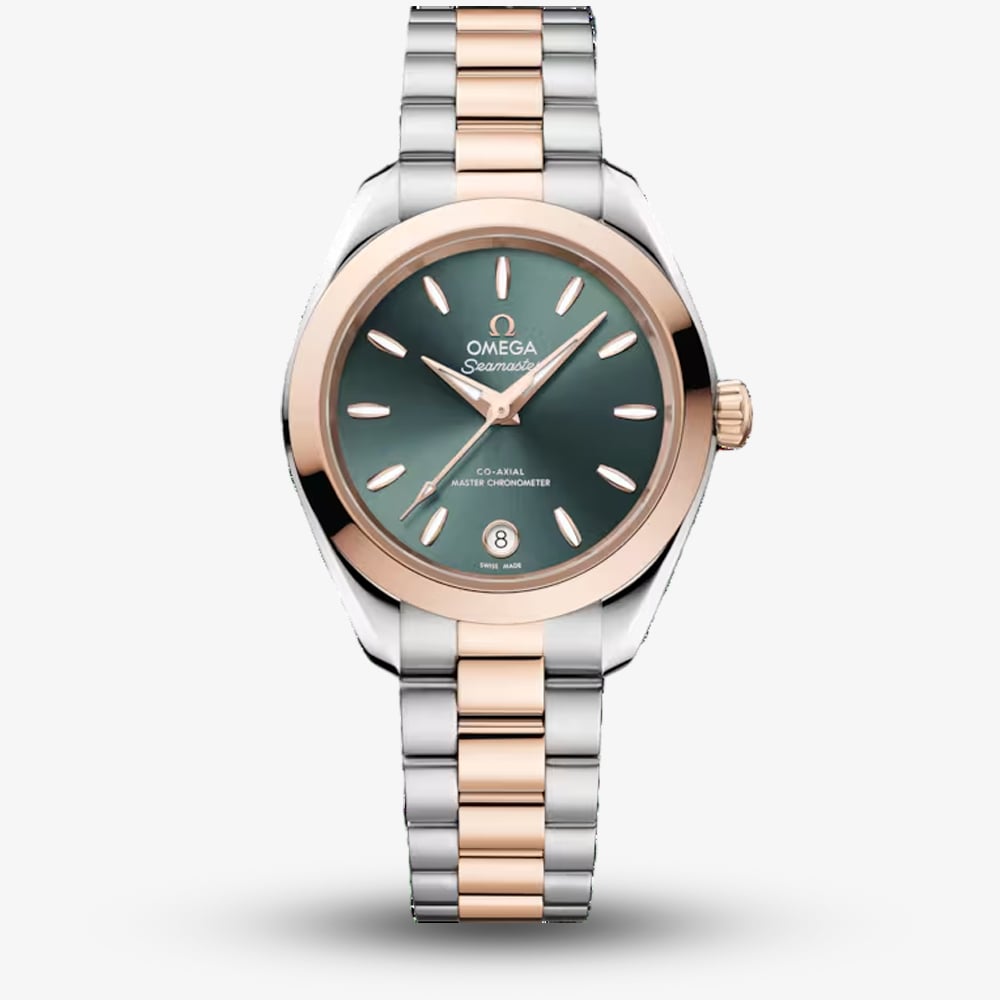 Sophisticated, versatile, and crafted with precision, this watch is a celebration of elegance and performance. Its striking green dial gives the watch a refined, luxurious appearance. Polished hands and hour markers enhance readability while adding a touch of sparkle. The two-tone stainless steel and 18ct rose gold case and bracelet create a harmonious blend of luxury and durability, perfectly suited for both everyday wear and special occasions.