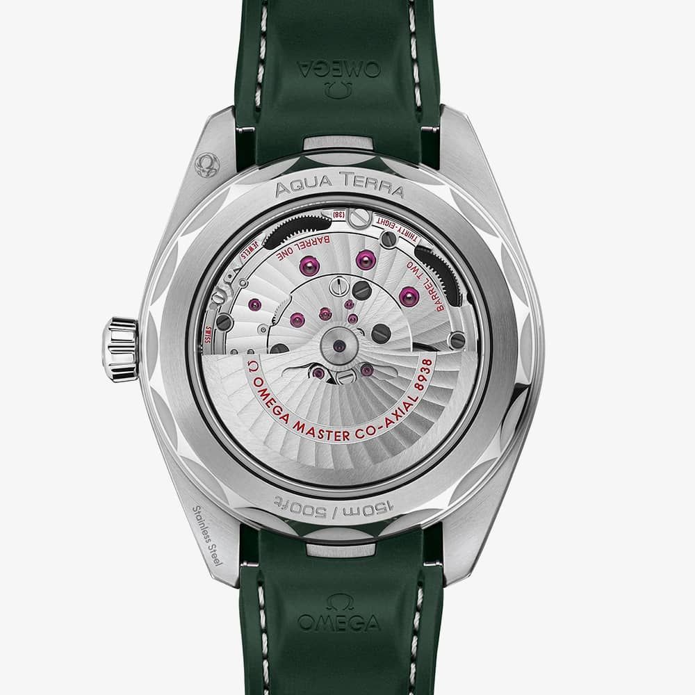 Introducing the Omega Aqua Terra Chronometer GMT World timer like you’ve never seen it before. This version of the world-timer features a stunning and stand out green dial. That really gives this a watch a different perspective on the world timer. The dial also features 18k yellow gold hour markers that gives this watch its elegance. The dial and map are all made from titanium.