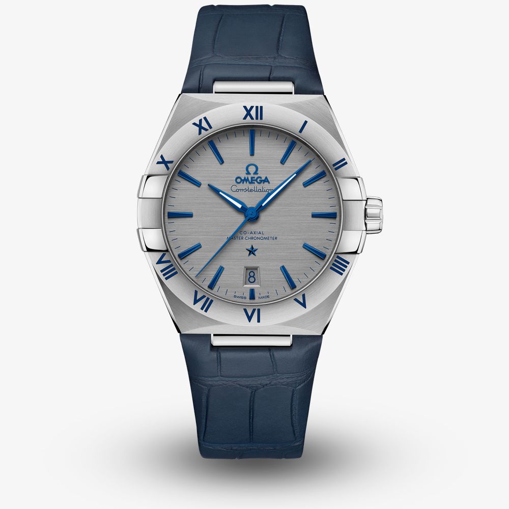 https://www.thbaker.co.uk/omega-mens-constellation-co-axial-master-chronometer-watch-131-13-39-20-06-002111426OMEGA Mens Constellation Co-Axial Master Chronometer Blue Leather Strap Watch 131.13.39.20.06.002https://www.thbaker.co.uk/media/catalog/product/2/4/24-64-425_01_1.jpg60006000GBPOutOfStockCONST* 39MM SS BLU SW GRY The OMEGA 131.13.39.20.06.002 Constellation watch combines a 39mm round shaped stainless steel case and blue leather strap with a push button clasp. It has a deep horizontally-brushed ruthenium grey analogue dial with a date display and blued Super-LumiNova filled hands, all of which is protected beneath domed scratch resistant sapphire crystal glass with an anti-reflective treatment on both sides. Power is generated by the automatic movement. This model also has a water resistance of up to 50 metres.OMEGAhttps://www.thbaker.co.uk/media/catalog/product/2/4/24-64-425_omega_02.jpghttps://www.thbaker.co.uk/media/catalog/product/o/m/omega-packaging_72.jpg7612586302800add-to-cartcondition:Nodisc_no_stock:Yesex_display:NoNoYesNo2464425OMEGA131.13.39.20.06.002MensOfficial OMEGA Packaging5 Year OMEGA WarrantyLuxuryNoConstellationWatchStainless SteelBlueLeather StrapStainless SteelRound39mmAnalogueSapphire Crystal GlassGreyGrey50 metresAutomaticPush Button Deployment ClaspNo StoneNo Stone90gNoNoNoYesYesYesNoOMEGA Mens Constellation Co-Axial Master Chronometer Blue Leather Strap Watch24-64-4252021-11-19 00:00:000[]2021-11-19