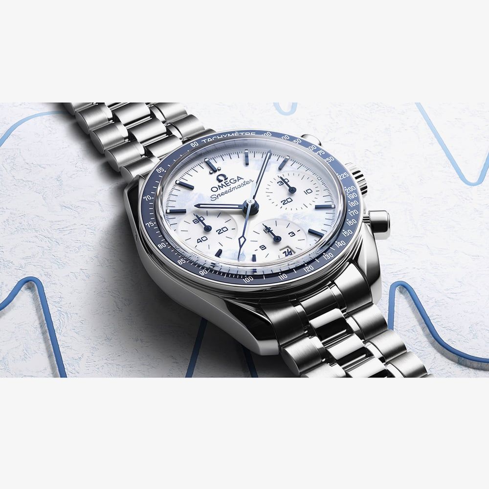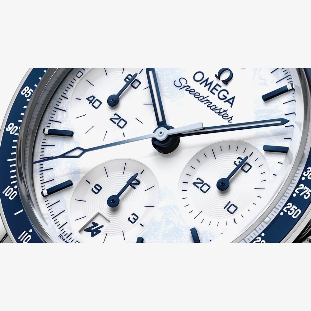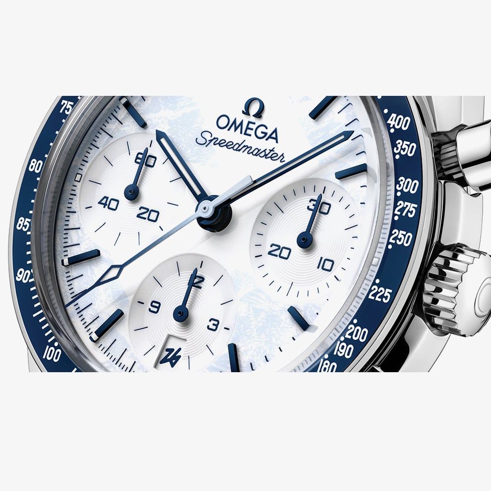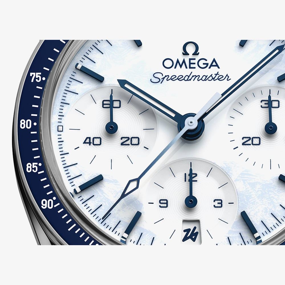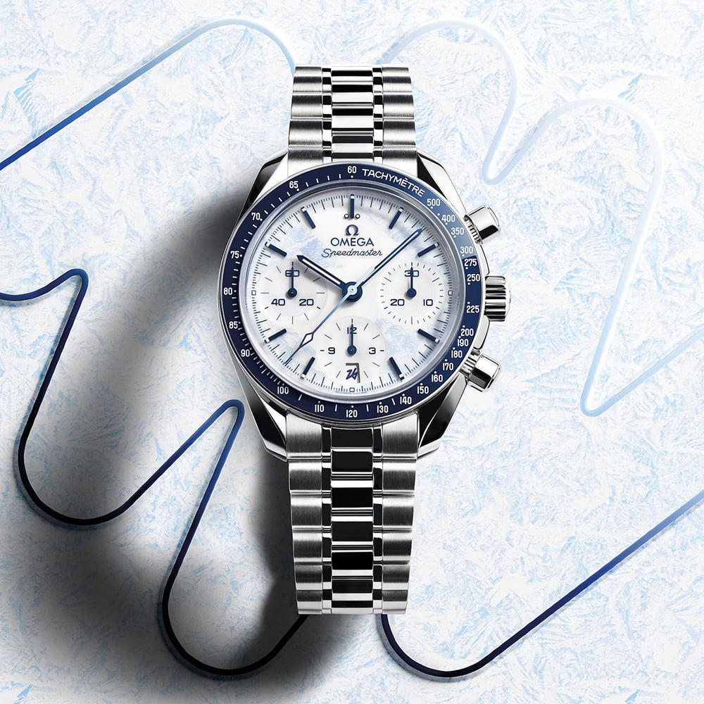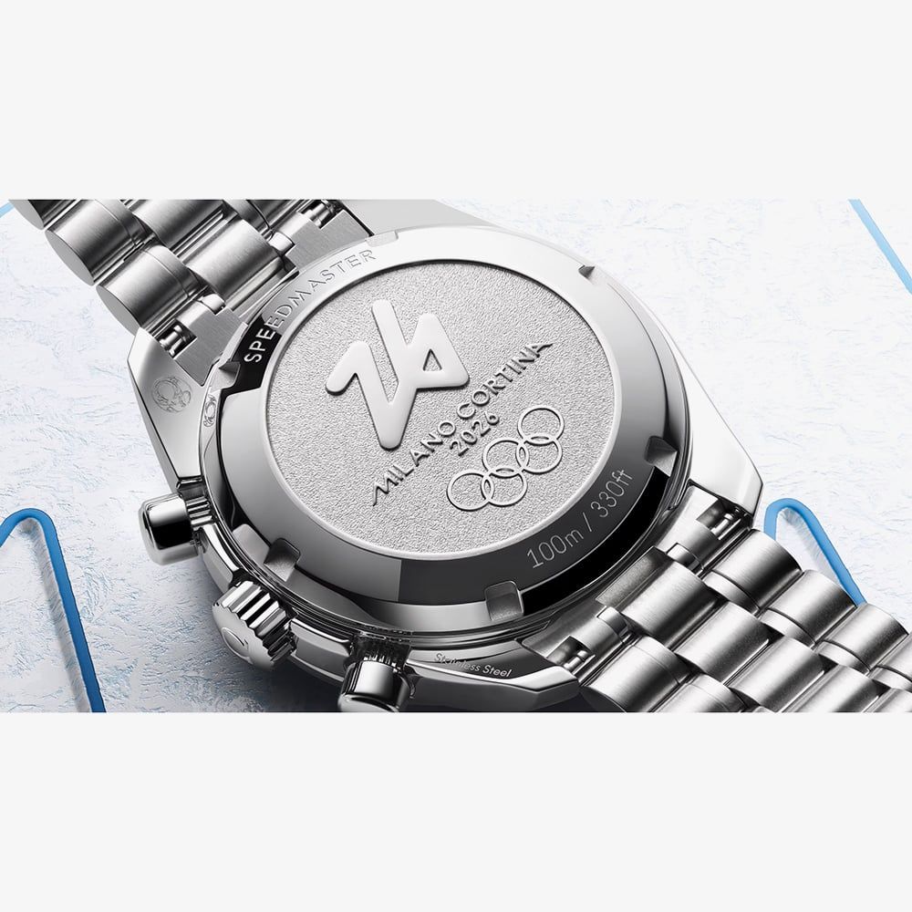 Crafted to honour OMEGA’s role as Official Timekeeper, the Speedmaster model 522.30.38.50.04.001 brings a quietly celebratory spirit to the Milano Cortina 2026 Winter Games. Its 38mm stainless steel case has a reassuring weight and a smooth, cool finish, paired with a deep blue ceramic bezel that frames the piece with crisp clarity. The white enamel tachymeter scale adds a clean contrast that feels unmistakably wintry.