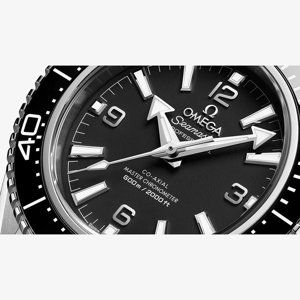The OMEGA Seamaster Planet Ocean 217.32.42.21.01.001 reflects the brand’s storied dive watch heritage, combining technical precision with refined elegance. Its 42mm stainless steel case is polished and brushed for a balanced, sophisticated finish, complemented by a screw-in crown and unidirectional black ceramic bezel with a white enamel diving scale and an inner ring in polished grade 5 titanium.