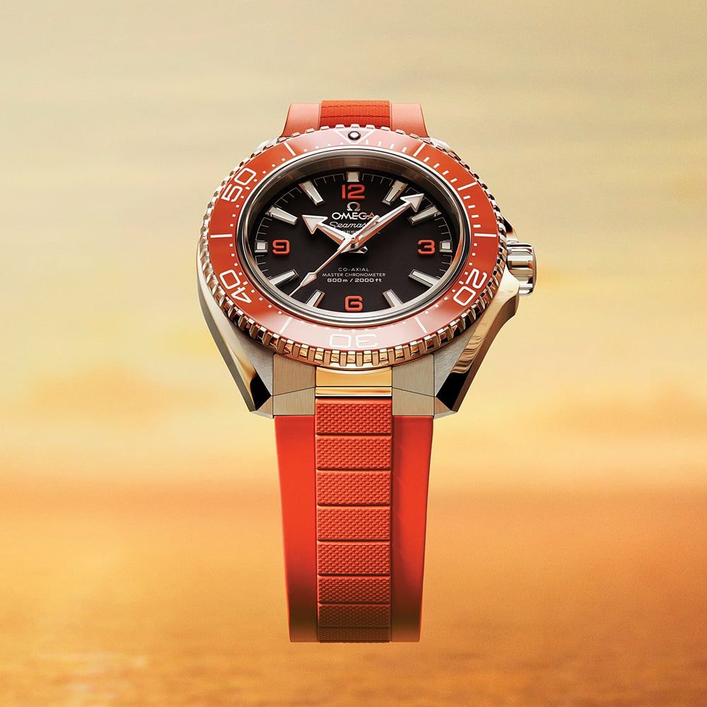 The matte black dial features rhodium-plated hands and indexes coated with white Super-LumiNova for optimal legibility, alongside four rhodium-plated Arabic numerals and crisp transferred lettering. Powered by the Co-Axial Master Chronometer Calibre 8912, this timepiece delivers exceptional accuracy and reliability. It is presented on an orange rubber strap with a stainless steel link to the case, securing with a fold over clasp, while the screw-in case back in grade 5 titanium bears OMEGA’s iconic seahorse emblem. Perfect for enthusiasts who value enduring craftsmanship and purposeful design.