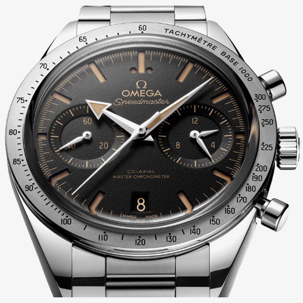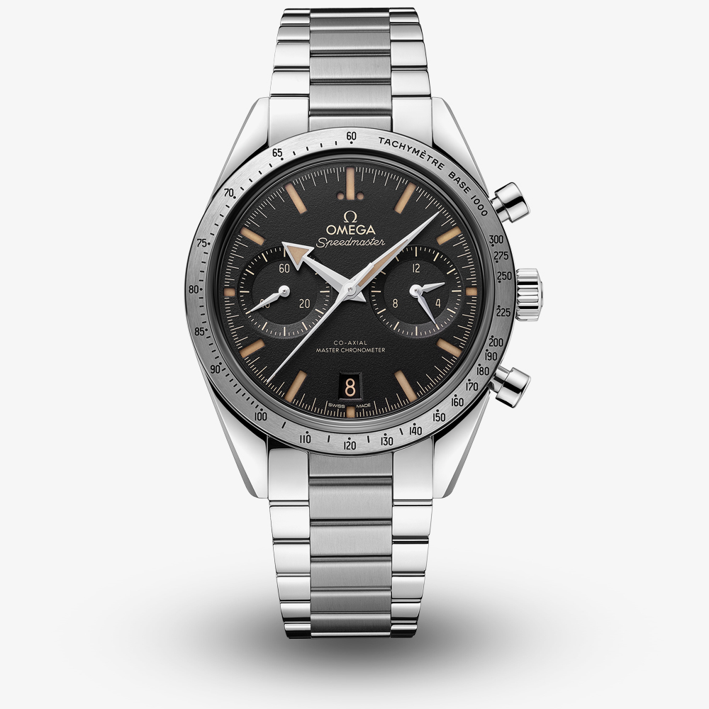 The OMEGA Mens Speedmaster 57 Co-Axial Master Chronometer Chronograph Watch 332.10.41.51.01.001 combines a 40mm round-shaped stainless-steel case and silver stainless steel bracelet with a push button deployment clasp. It has a black analogue dial with luminescent hands, a date display, chronograph sub-dials, and a tachymeter scale which is protected beneath scratch-resistant sapphire crystal glass. Power is generated by the automatic movement which has a power reserve of 60 hours. This model also has a water resistance of up to 50 metres. This watch is inspired by the 1957 original watch.