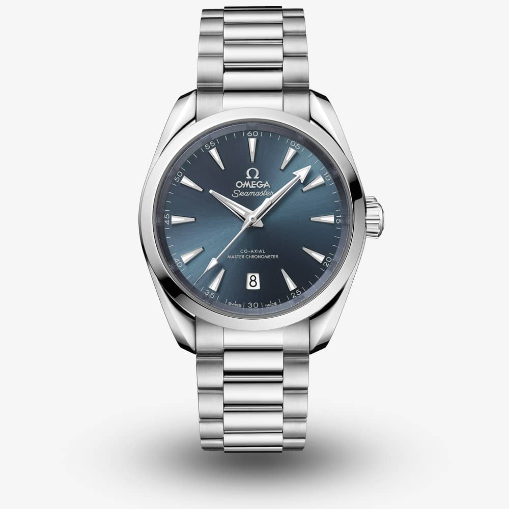 The OMEGA Seamaster Aqua Terra Co-Axial Master Chronometer 220.10.38.20.03.003 watch combines a 38mm round shaped stainless-steel case and a polished & brushed stainless-steel bracelet with a push button deployment clasp. It has a sun-brushed Atlantic blue analogue dial with Super-LumiNova hands & date display at the 6oclock position which are protected beneath a scratch-resistant domed sapphire crystal glass with an anti-reflective treatment on both sides. Power is generated by the automatic movement with a power reserve of up to 55 hours, a Co-Axial escapement & a Certified Master Chronometer. This OMEGA watch is Anti-Magnetic, has a screw-in-crown & transparent case back. This model also has a water resistance of up to 150 metres.