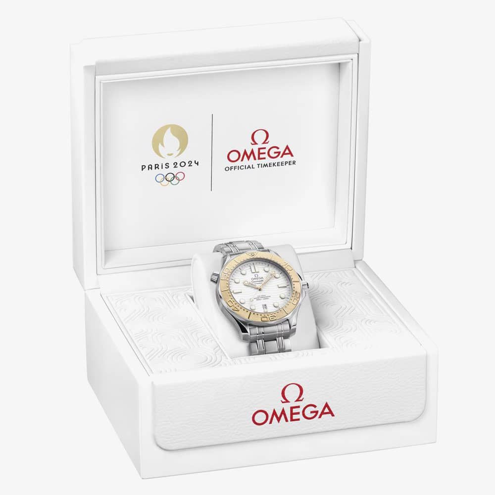 The Olympic Games Paris 2024 will mark the 31st time since 1932 that OMEGA has fulfilled the vital role of Official Timekeeper at the Olympic Games. To celebrate that historic occasion, this special Seamaster Diver 300m offers a sporty design in white, gold, and black - following the official Olympic colour chart.