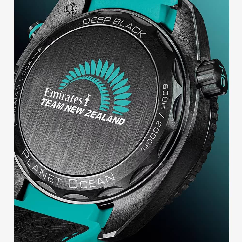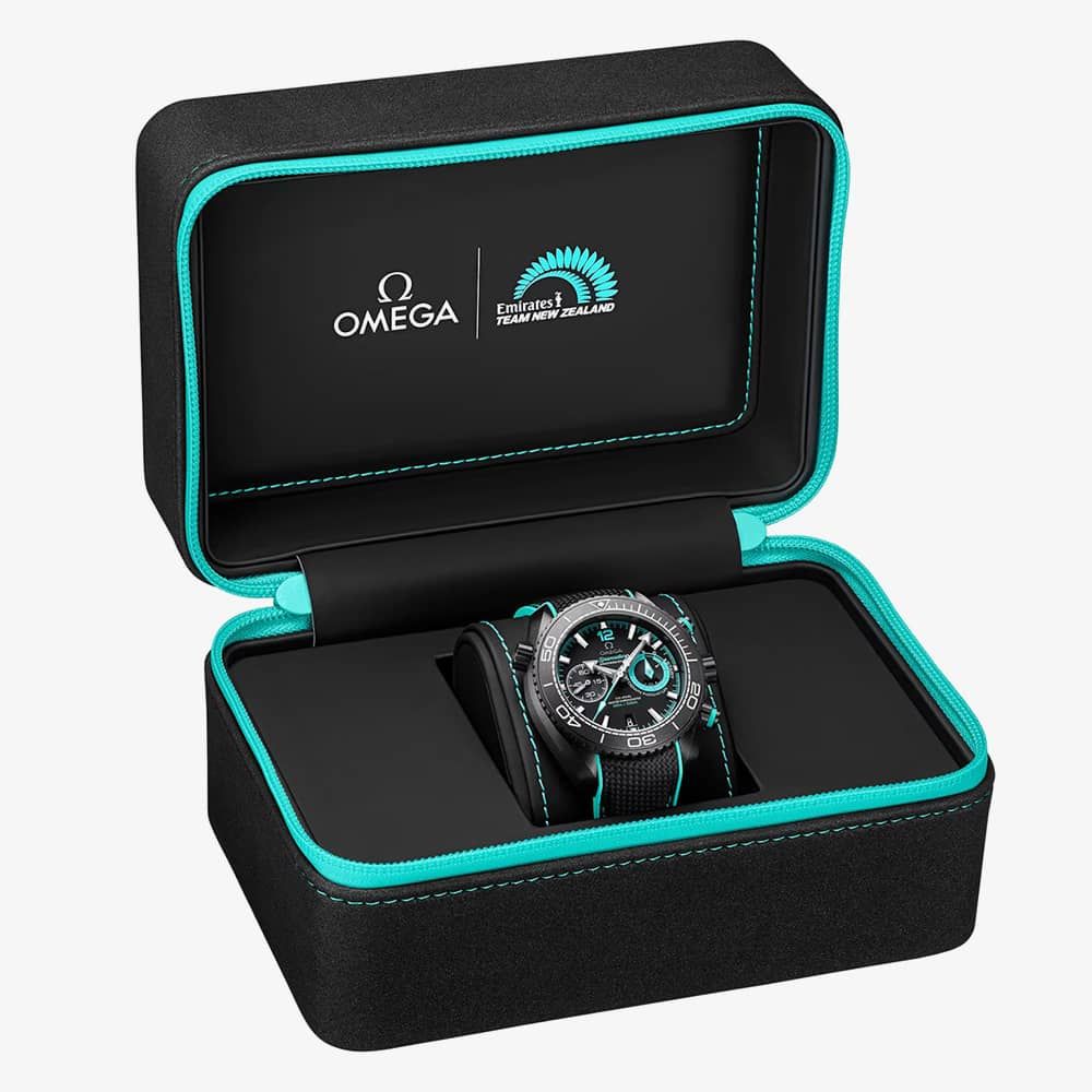 As a gesture to the New Zealand crew, the NAIAD LOCK case back proudly displays the Emirates Team New Zealand logo, featuring a turquoise fern and white lettering. Securing the race-ready timepiece to the wrist is a structured rubber strap in black and turquoise. Powering the watch is OMEGA’s Master Chronometer Calibre 9900.