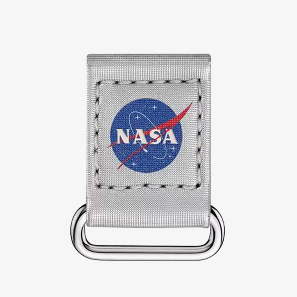 In honour of the enduring partnership between OMEGA and NASA, a special collaboration has resulted in the creation of a this 2-piece grey Speedmaster Moonwatch VELCRO® strap. This astronaut-friendly accessory features prominent branding, including the iconic NASA "meatball" logo on the front and the OMEGA logo on the back. The NASA "meatball" insignia, with its vibrant red, white, and blue colours, symbolises the pioneering spirit of space exploration since its introduction in 1959. Completing the design is a polished stainless steel oval ring loop, ensuring both style and functionality for wearers.