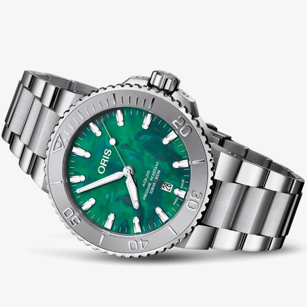The Oris x Bracenet Men's Watch is a dynamic fusion of style and sustainability. This remarkable timepiece showcases a dial crafted from upcycled 'ghost' fishing nets, meaning that no two dials are the same. More than just a watch, it's a statement of environmental consciousness and distinctive craftsmanship. Join the movement for a greener tomorrow with a watch that tells a unique story while keeping you punctual in style.