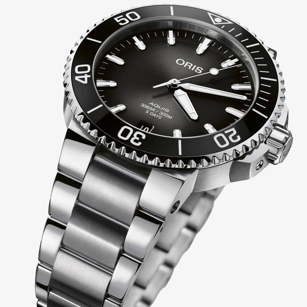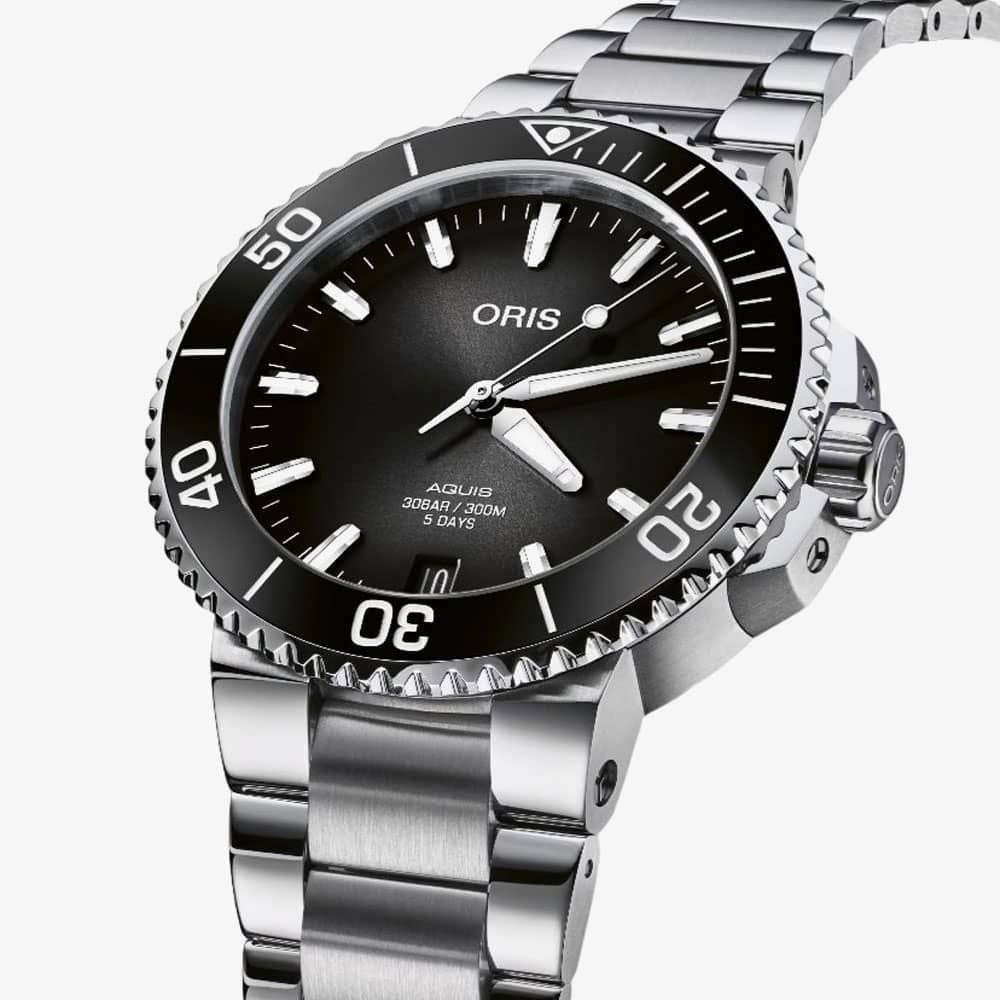 The Oris 01 400 7769 4154-07 8 22 09PEB watch contains the new in-house automatic winding movement created by Oris; the Calibre 400. Features of this movement include being highly resistant to magnetism due to the silicon components within the movement, a five day power reserve (120 hours) and a 10 year warranty*. In addition, the Calibre 400 movement is highly accurate (to -3/+5 seconds a day). This watch combines a 41.5mm stainless steel case with a ceramic bezel and a stainless steel bracelet with a push button deployment clasp. It has a black dial with Superluminova indices and hands, and a date function at six o-clock, which is protected beneath sapphire crystal glass. This model also has a water resistance of up to 300 metres. *When you register at MyOris.