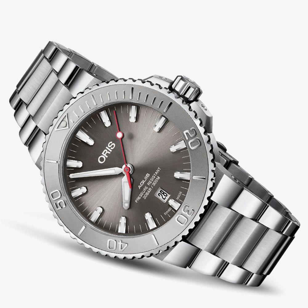 This high performance diving watch was inspired by Oris's quest to raise awareness of the importance of water, this is reflected in the grey dial to represent stormy seas. This model also features a new bezel design with a minutes scale in relief.