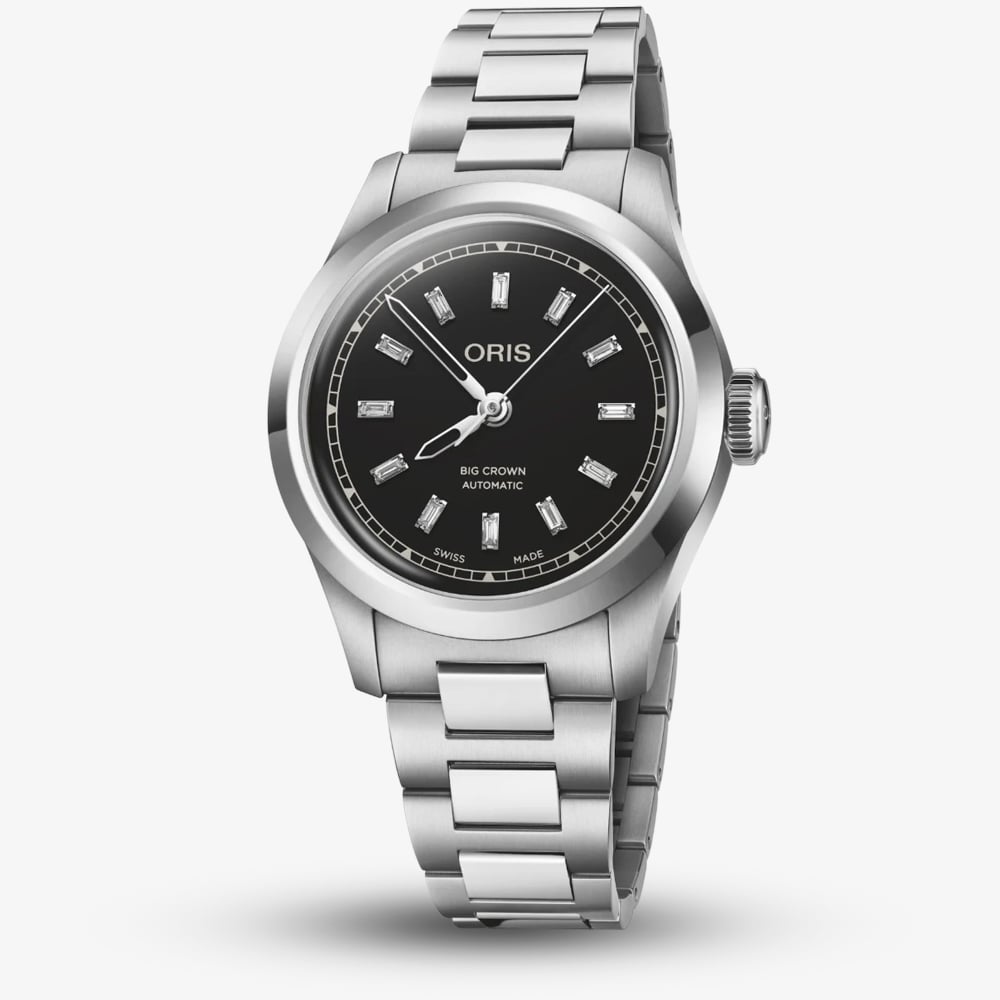 This timepiece blends timeless style with modern craftsmanship. Its sleek black dial, adorned with diamonds, exudes luxury with every glance. Powered by a Swiss automatic movement, this timepiece not only captivates with its aesthetics but also ensures unparalleled accuracy. Each component is meticulously engineered to uphold Oris's legacy of reliability and performance, promising precise timekeeping.This timepiece also offers unmatched versatility. Water-resistant up to 50 metres, it transitions seamlessly from casual to formal, complementing any occasion with its robust functionality.