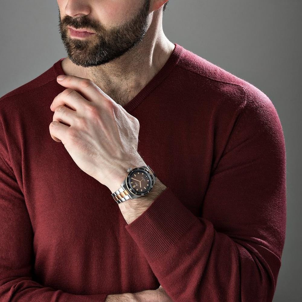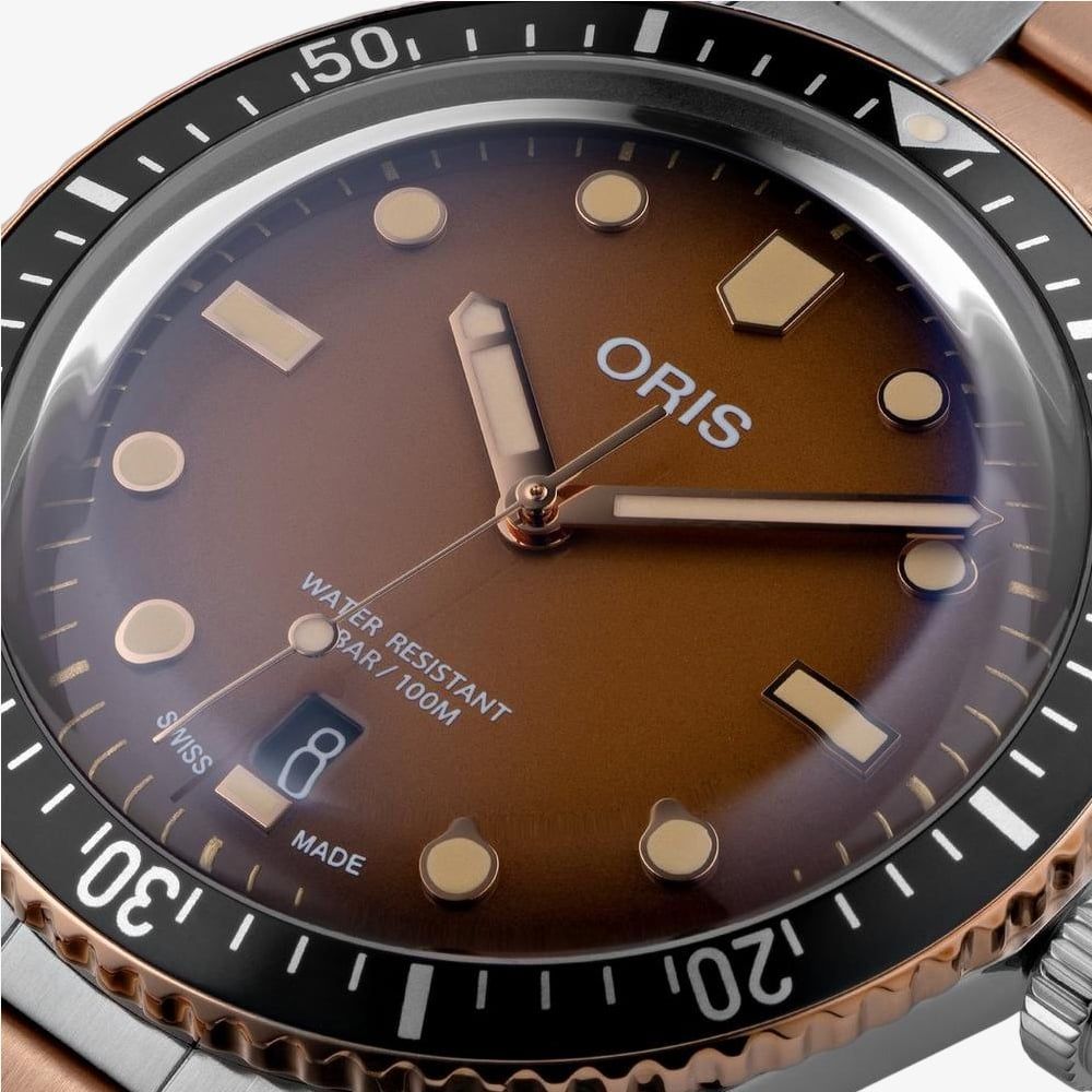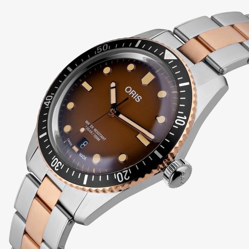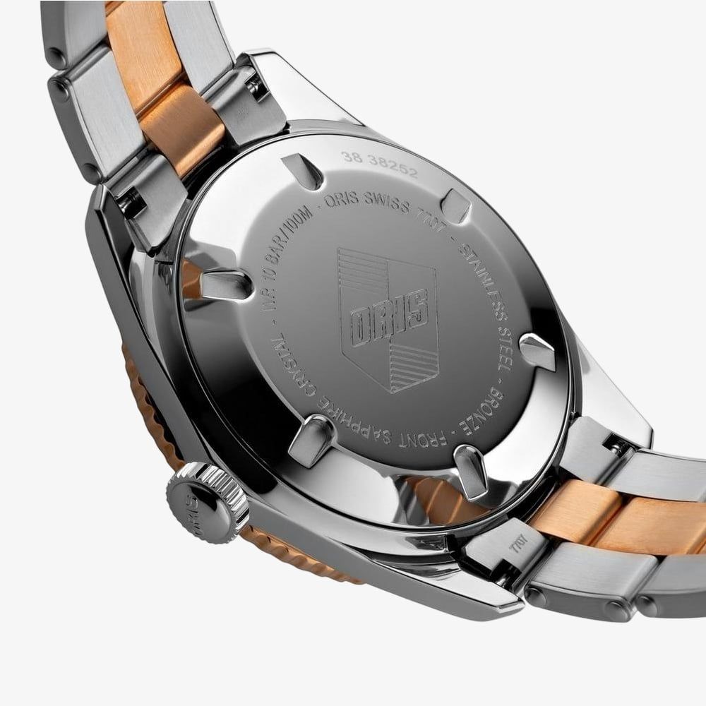 The Oris 01 733 7707 4356-07 8 20 17 watch combines a 40mm round shaped stainless steel case and silver stainless steel bracelet with a fold over clasp. It has a brown analogue dial with luminescent hands, date display which is protected beneath scratch resistant sapphire crystal glass. Power is generated by the automatic movement and has a power reserve of 35 hours. This model also has a water resistance of up to 100 metres.