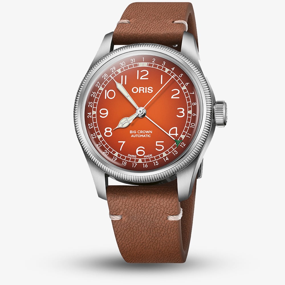 The Oris x Cervo Volante collaboration celebrates Swiss craftsmanship and sustainable design. Based on the iconic Oris Big Crown Pointer Date, this timepiece features a striking burnt maple dial that evokes the natural tones of the Alpine landscape. Paired with a beautifully tanned deer leather strap ethically sourced by Cervo Volante, it reflects a deep respect for nature and tradition. Powered by a reliable Swiss automatic movement and presented with a matching Cervo Volante travel pouch, this elegant collaboration combines timeless style, responsible materials, and enduring performance.