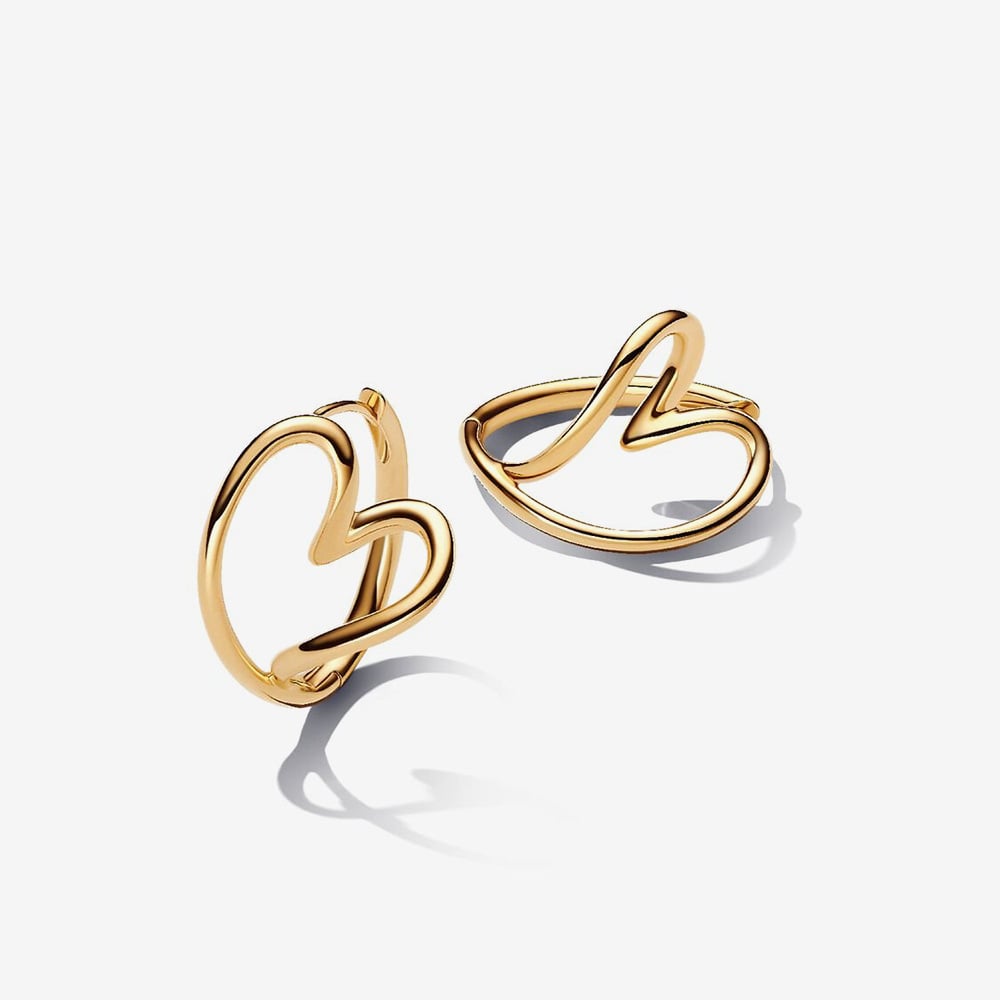 Love meets modern design in these 14ct gold-plated hoop earrings from Pandora, crafted from a unique metal blend core. Featuring abstract openwork heart shapes and a secure click closure, this mirrored pair adds a touch of romance to any look.