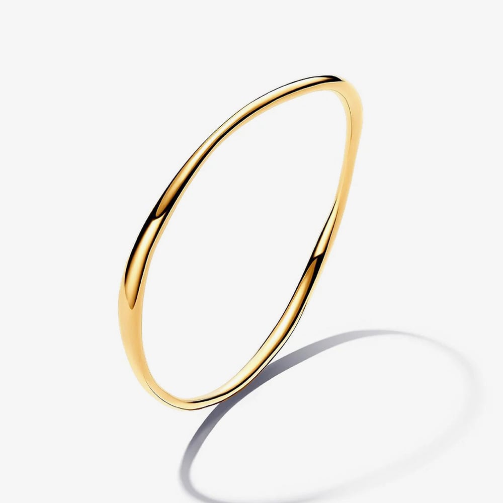 Elevate your jewellery collection with the Pandora Organically Shaped Bangle in 14ct gold plating. Its fluid, curved design offers a modern and elegant silhouette, making it perfect for stacking with other bracelets or wearing alone as a statement piece. A versatile, timeless addition to any jewellery wardrobe, ideal for everyday wear or special occasions.