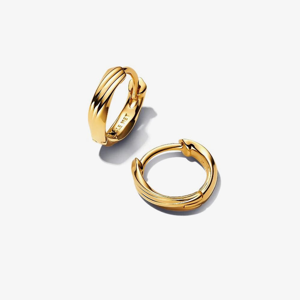 Add effortless style with the Pandora Twisted Huggie Hoop Earrings in 14ct gold plating. The twisted design catches the light beautifully, creating a subtle sparkle and modern look. Perfect for everyday wear or layering with other earrings.