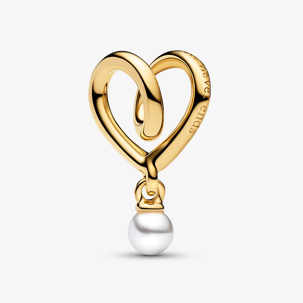 Add elegance to your Pandora Moments bracelet with the Pandora 14ct Gold Plated Wrapped Heart Charm. Expertly crafted for lasting quality, this openwork twisted heart features an imitation pearl and is engraved with "family, where love never ends" making it a perfect gift for someone special.
