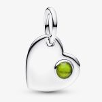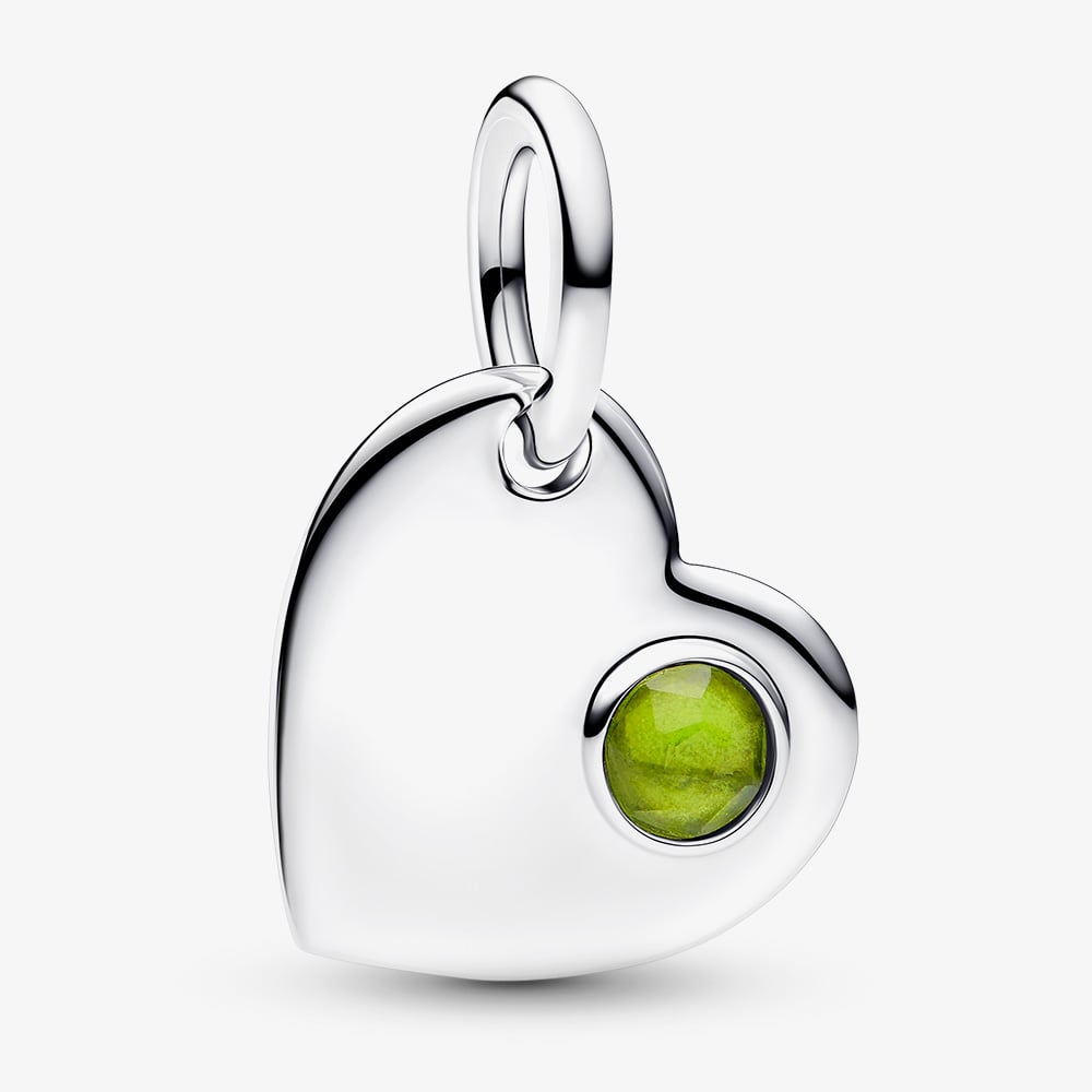 Celebrate birthdays with the sterling silver Pandora August Birthstone Heart Dangle Charm in sterling silver for Pandora Moments bracelets. Meticulously hand-finished for exceptional craftsmanship, the heart features a pale green man-made crystal in one corner, making it a sweet and thoughtful birthday gift.