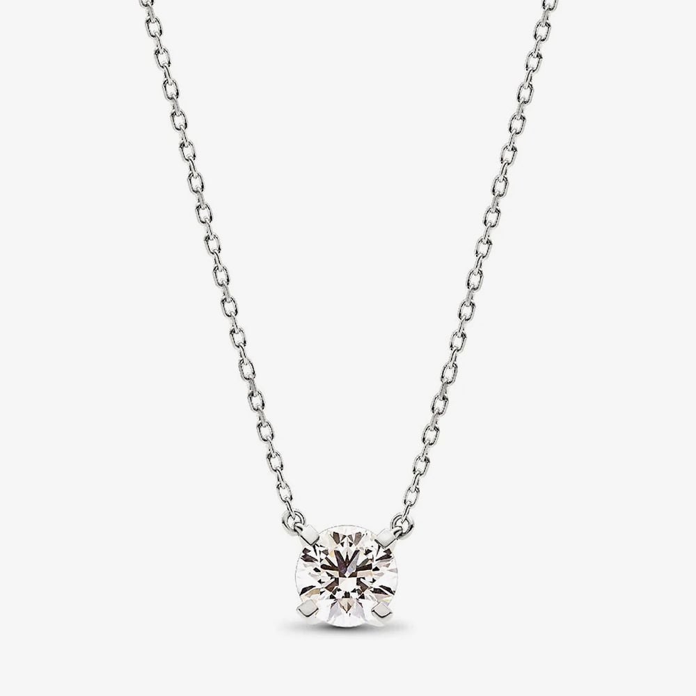 Elevate your jewellery collection with the Pandora Era Necklace, crafted in luxurious 14ct white gold. The centerpiece is a brilliant-cut 1.00ct lab-grown diamond of exceptional quality, meticulously hand-finished to ensure sparkle and brilliance from every angle. This classic-meets-contemporary design is suspended on a 45cm trace chain, making it perfect for special occasions or as a meaningful gift.