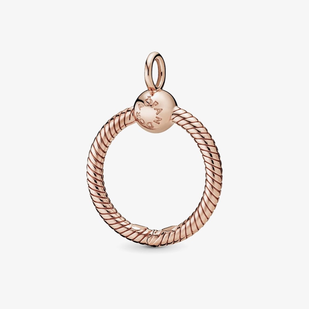 Personalise your look with the Pandora Moments O Pendant in 14ct rose gold plating. Simply attach it to your favourite Pandora chain and customise with up to three charms, creating a unique, stylish piece that’s truly yours.