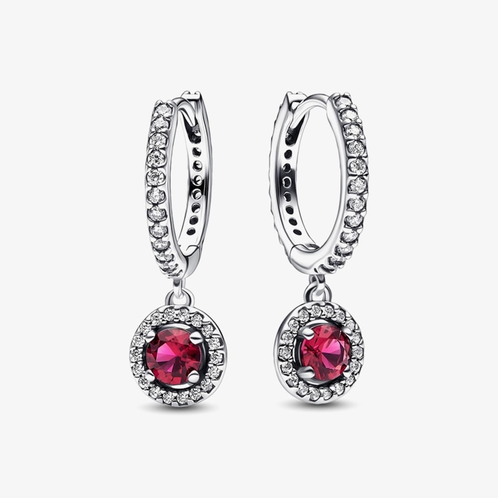 Make a dazzling statement with the Pandora Red Round Sparkling Hoop Earrings. Crafted from sterling silver, these hoops are set with white cubic zirconia and feature a red man-made crystal dropper surrounded by a halo of sparkling white stones. Perfect for evening wear and a sweet gift, they add a sparkling, statement-making touch to any outfit.