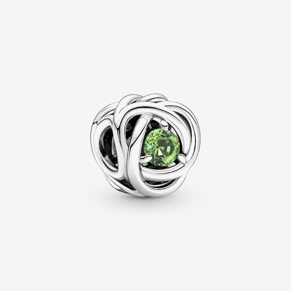 Celebrate August birthdays with this radiant Eternity Circle Charm, a sparkling tribute to eternal bonds. Crafted in the shape of an infinity braid, it features a cabochon-cut green man-made crystal at its centre, the perfect birthstone-inspired choice for August. Elegant and meaningful, this charm adds a brilliant, timeless touch to bracelets and pendants, making it a thoughtful and beautiful gift.