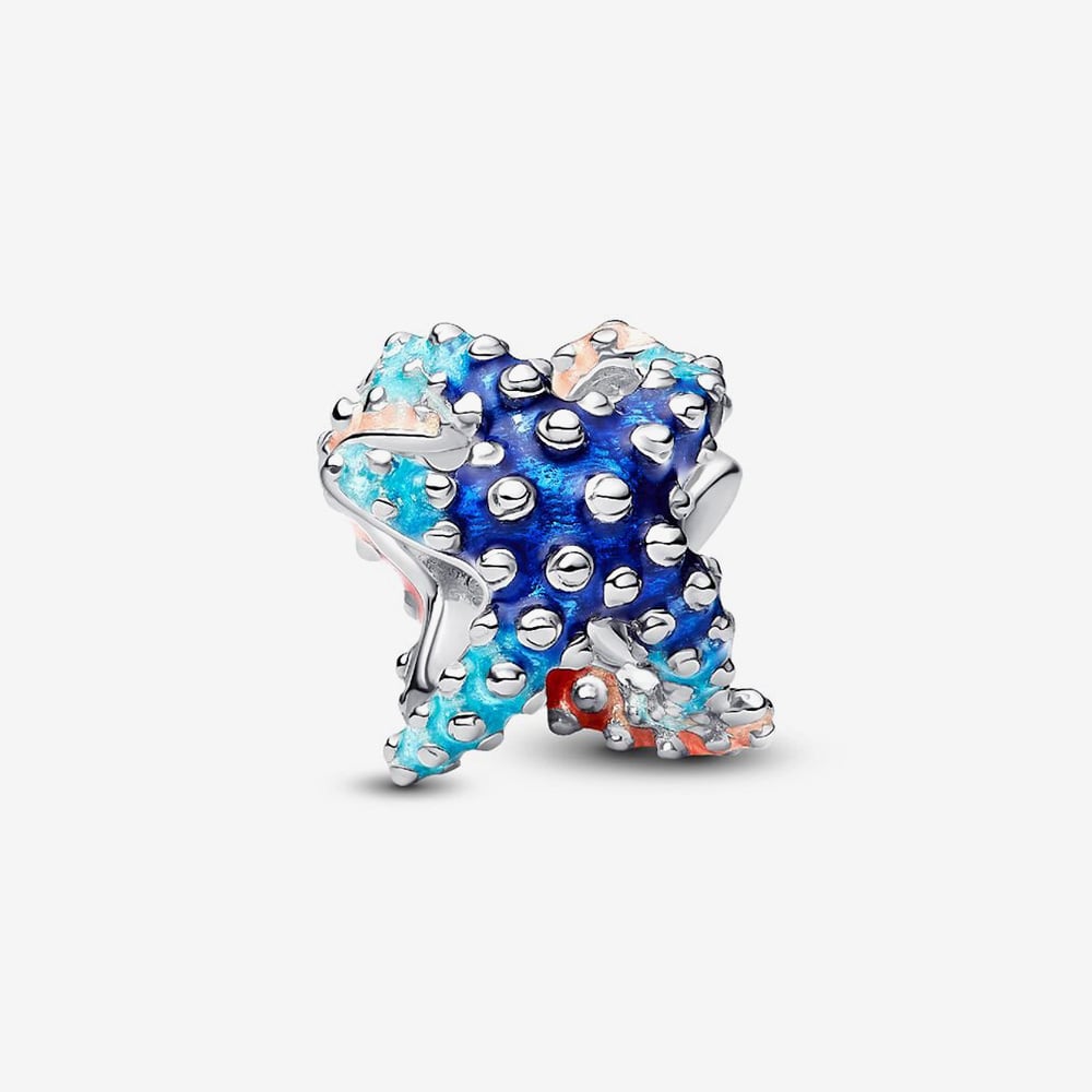 Dive into the magic of the ocean with this sparkling Pandora starfish charm. Crafted in sterling silver, it's detailed with multi-coloured shaded enamel and delicate microbeads, all finished with a glossy shine. A beautiful symbol of seaside treasures and coastal wonder.