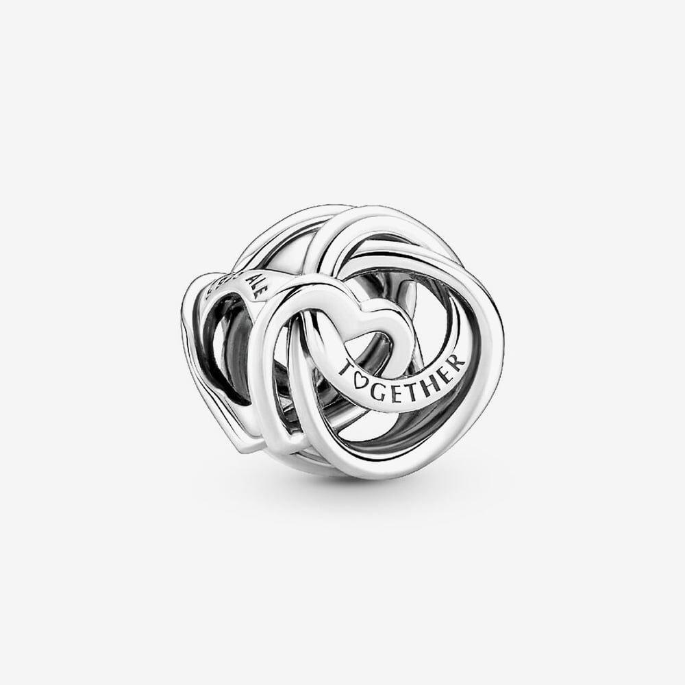 Honour the strength of family with this symbolic Pandora charm. Crafted in sterling silver, the design features intertwined circles joined by an open heart—representing unity and unbreakable bonds. Engraved with the words “ALWAYS” and “TOGETHER,” it’s a meaningful reminder that no matter what, family stays connected.