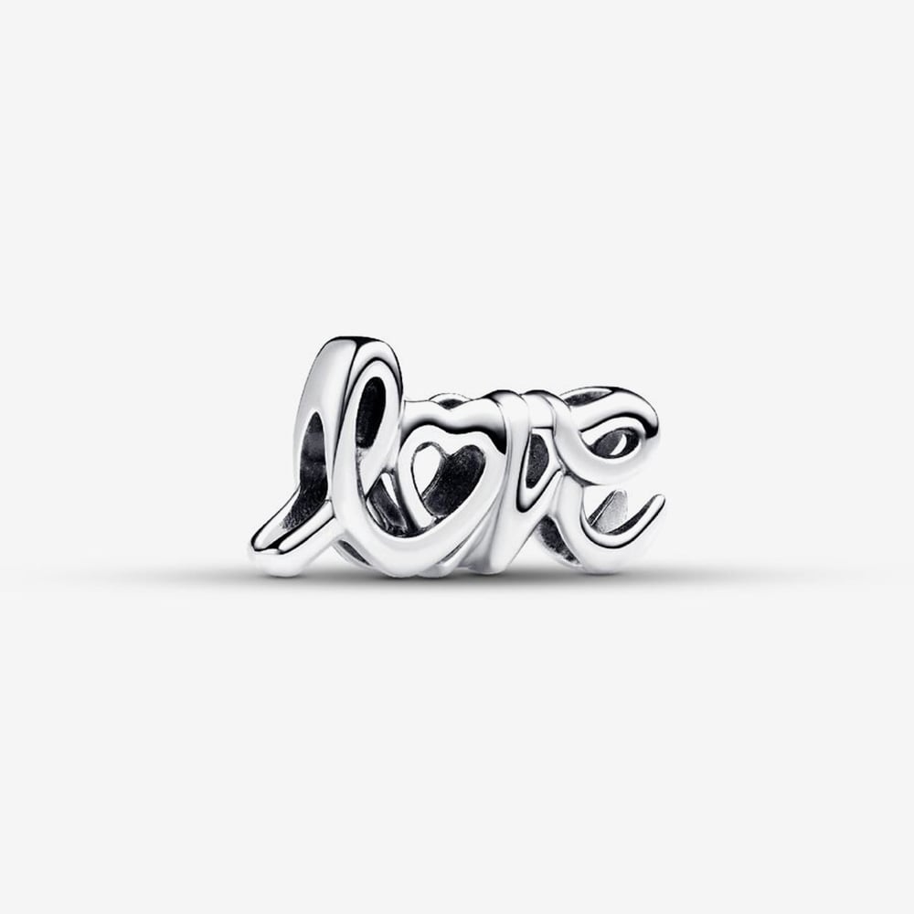 Express your feelings with this elegant sterling silver charm showcasing the word “love” in a flowing handwritten style. The mirrored letters add a unique twist, while the heart-shaped “o” brings a playful and heartfelt detail to your bracelet.