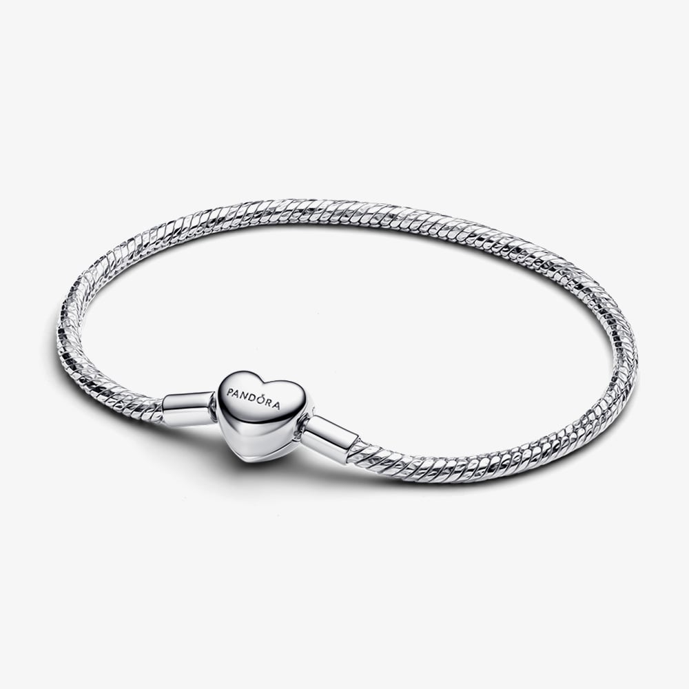 Elevate your charm collection with the Pandora Heart Clasp Faceted Snake Chain Bracelet in sterling silver. The faceted snake chain shimmers subtly, while the heart clasp engraved with PANDORA adds a delicate, elegant touch. Perfect for showcasing your favourite charms and creating a timeless, versatile look.