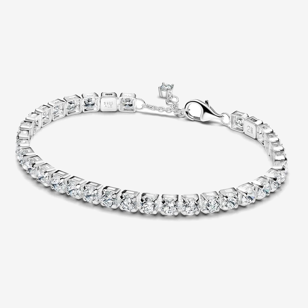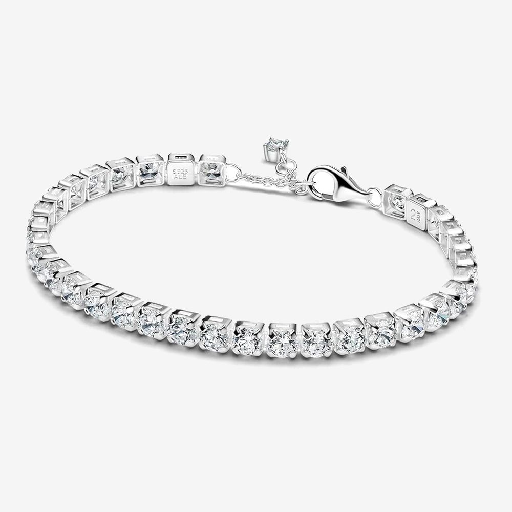Make a statement with the PANDORA Sparkling Bold Tennis Bracelet. Crafted in sterling silver, this striking bracelet is set with 34 brilliant-cut cubic zirconia stones that catch the light beautifully. Finished with a secure lobster clasp, it’s perfect for adding sparkle to any outfit, stacking with other bracelets, or gifting to someone special. A must-have piece for your jewellery collection, combining elegance and bold style.