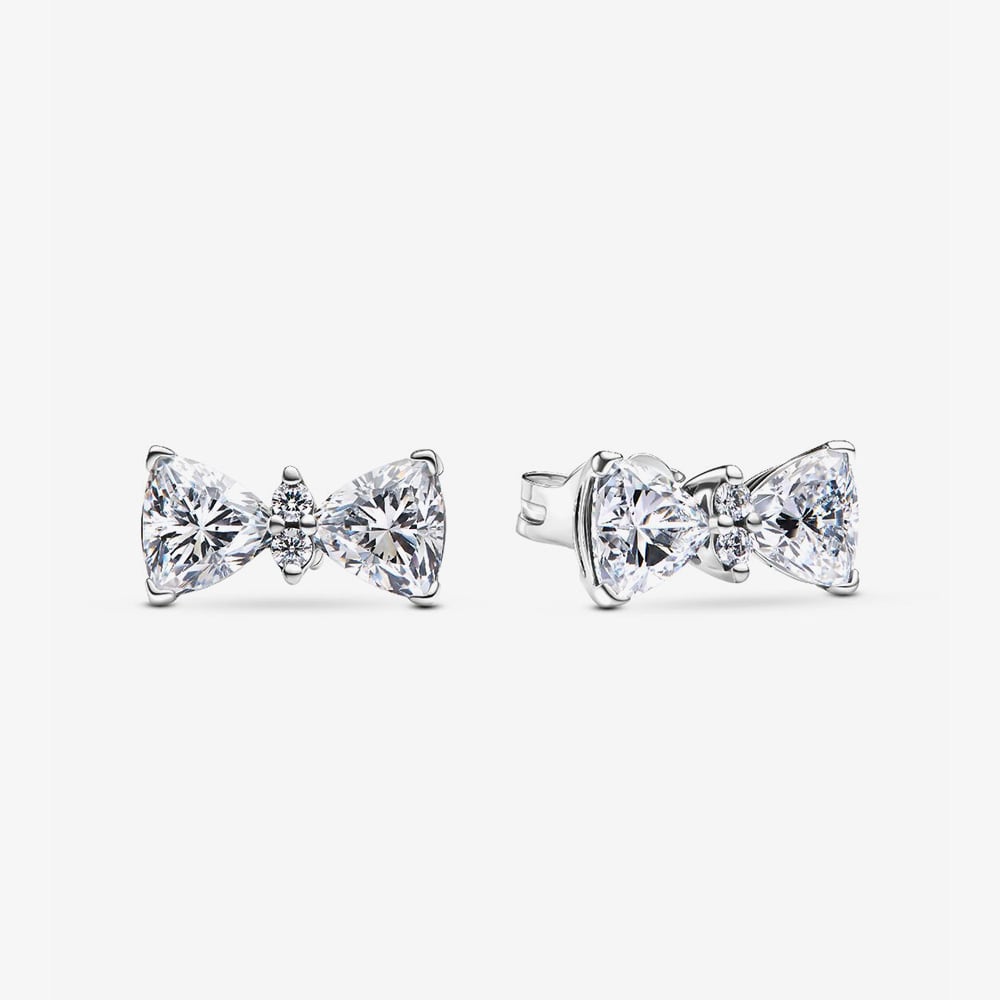 Whether dressing up or down, these sterling silver bow earrings by Pandora add a sweet, sparkling touch with their cubic zirconia accents. Wear them alone for understated elegance or combine with other bow-themed pieces for a standout look.