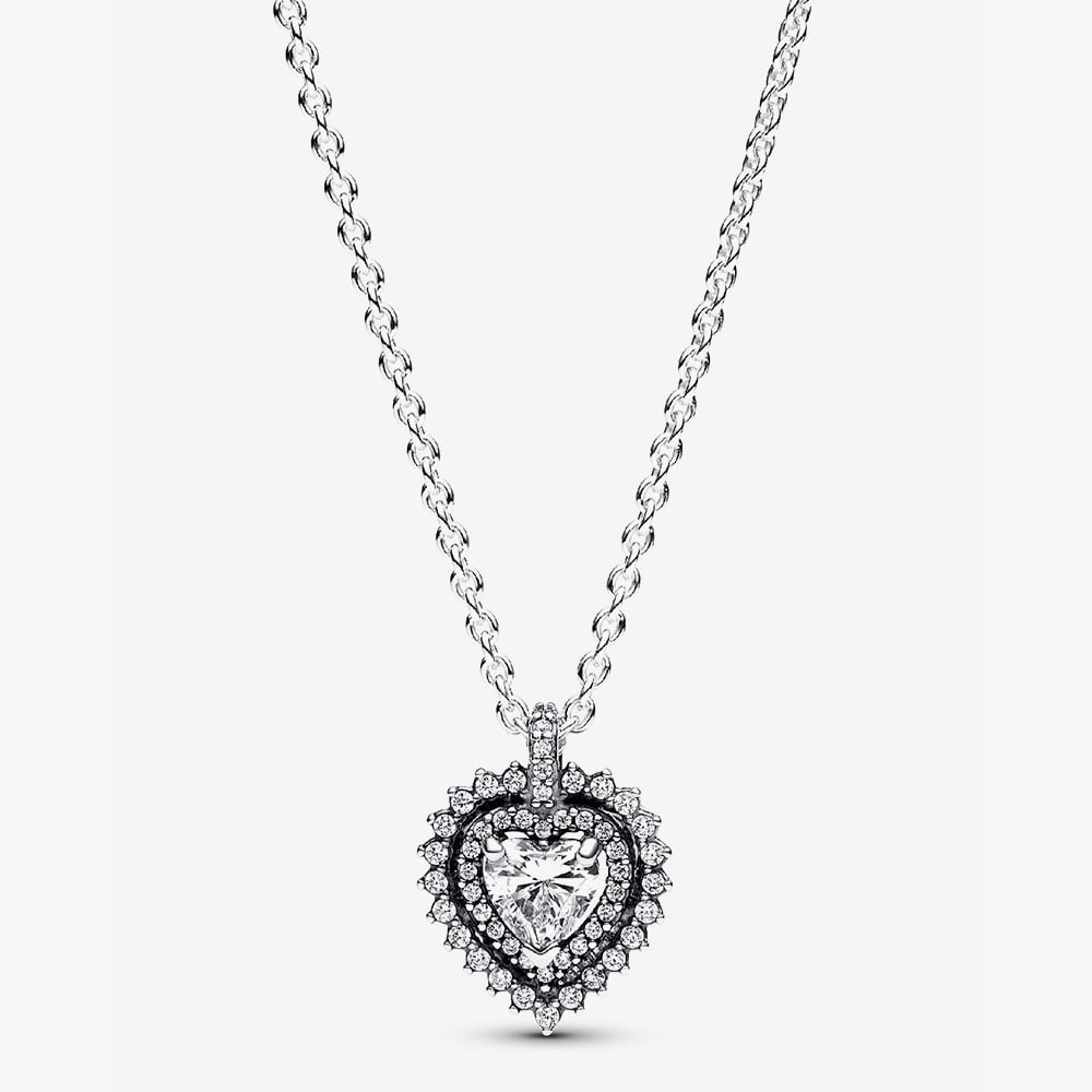 Showcase the depth of your love with this timeless Pandora necklace. Crafted in sterling silver, it features a heart-shaped cubic zirconia at the centre, framed by two shimmering halos set at different levels to create a layered, dimensional effect. A meaningful piece that radiates elegance and emotion.