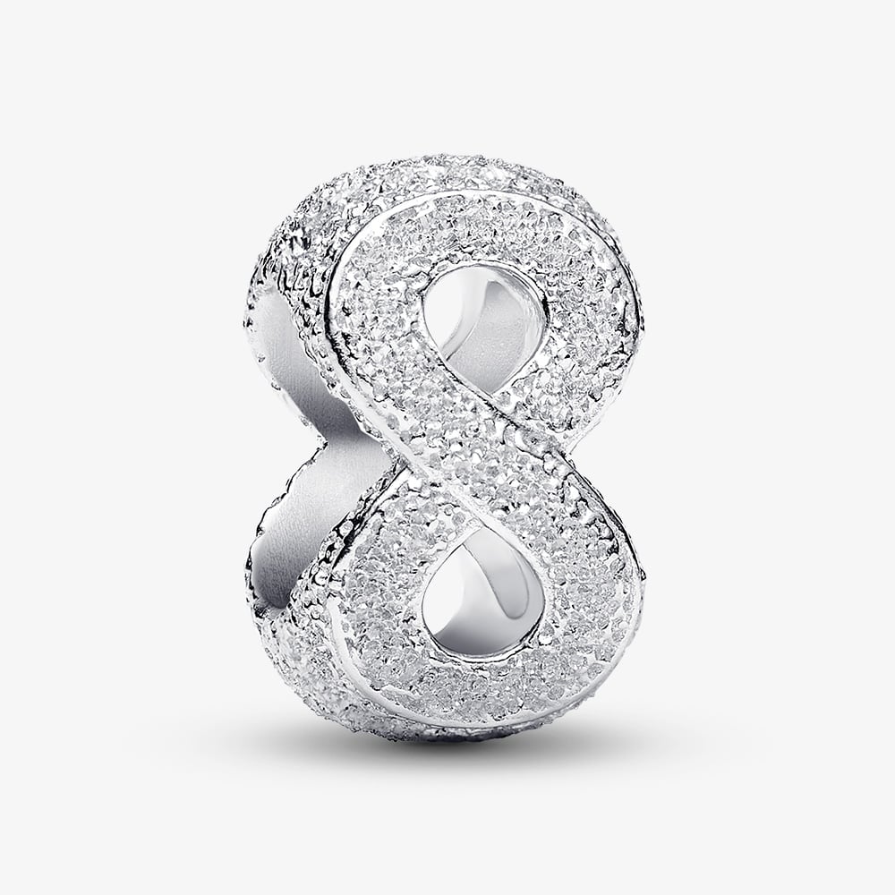 Symbolise everlasting love with the PANDORA Silver Textured Infinity Symbol Mini Charm. Crafted from sterling silver, this delicate mini charm features a textured infinity design that catches the light for a subtle, sparkling effect. Perfect as a Valentine’s Day gift or a meaningful present for a loved one, it adds a timeless touch to any bracelet.