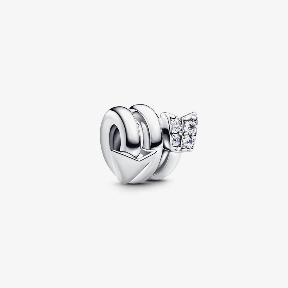 Celebrate love with the Pandora Twisting Arrow Charm. Crafted in sterling silver, this hand-finished charm features Cupid’s bow that elegantly wraps around your bracelet, with the feather of the bow set with sparkling cubic zirconia. A high-quality, romantic charm, perfect for Valentine’s Day or adding a love-inspired touch to your Pandora collection.
