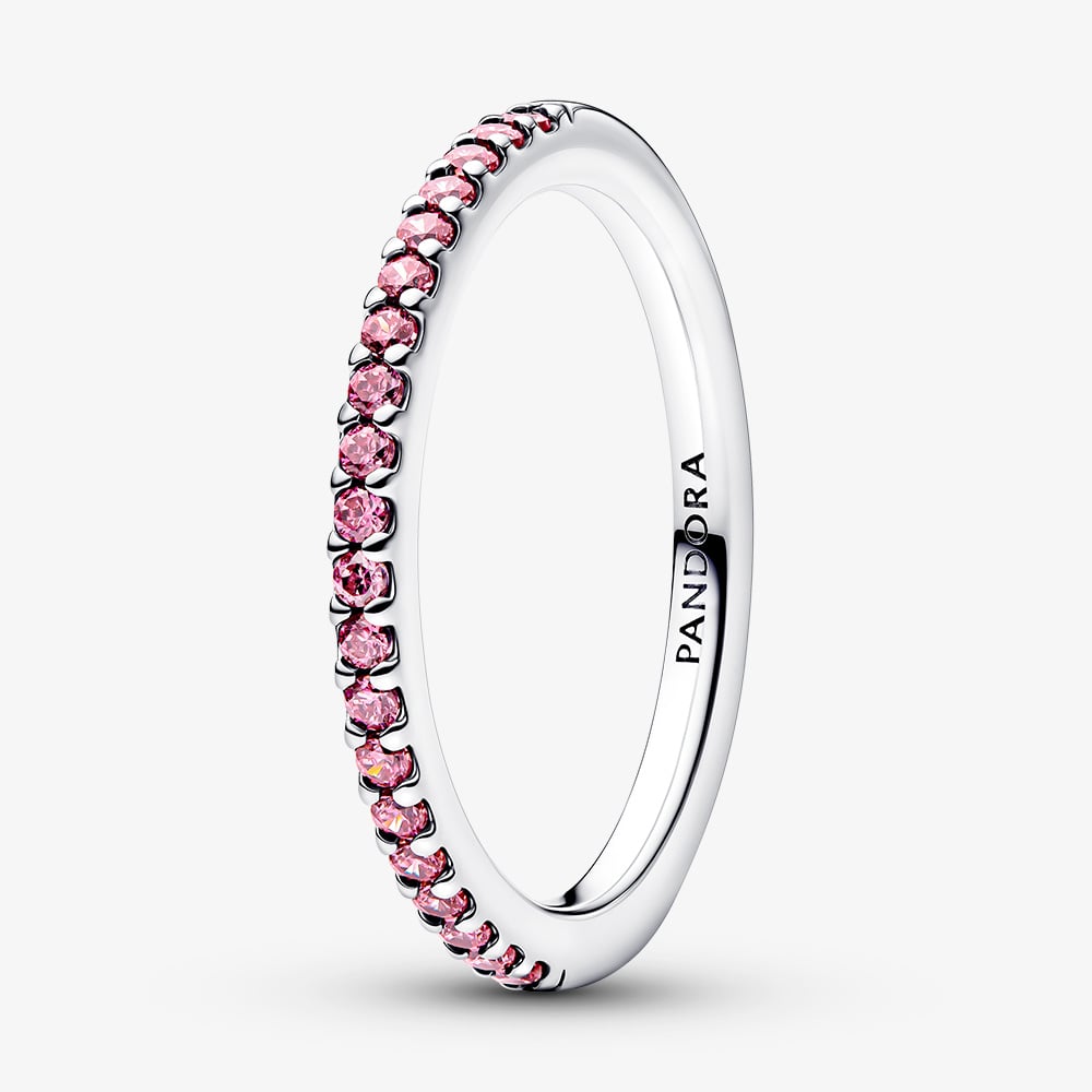 Add a touch of sparkle to everyday style with the PANDORA Sparkling Pink Band Ring. Crafted from sterling silver, this charming ring features a single row of shimmering pink cubic zirconia stones for a delicate, eye-catching shine. Sweet and versatile, it’s perfect for gifting a friend or loved one and works beautifully for stacking with your favourite rings to create a personalised look.