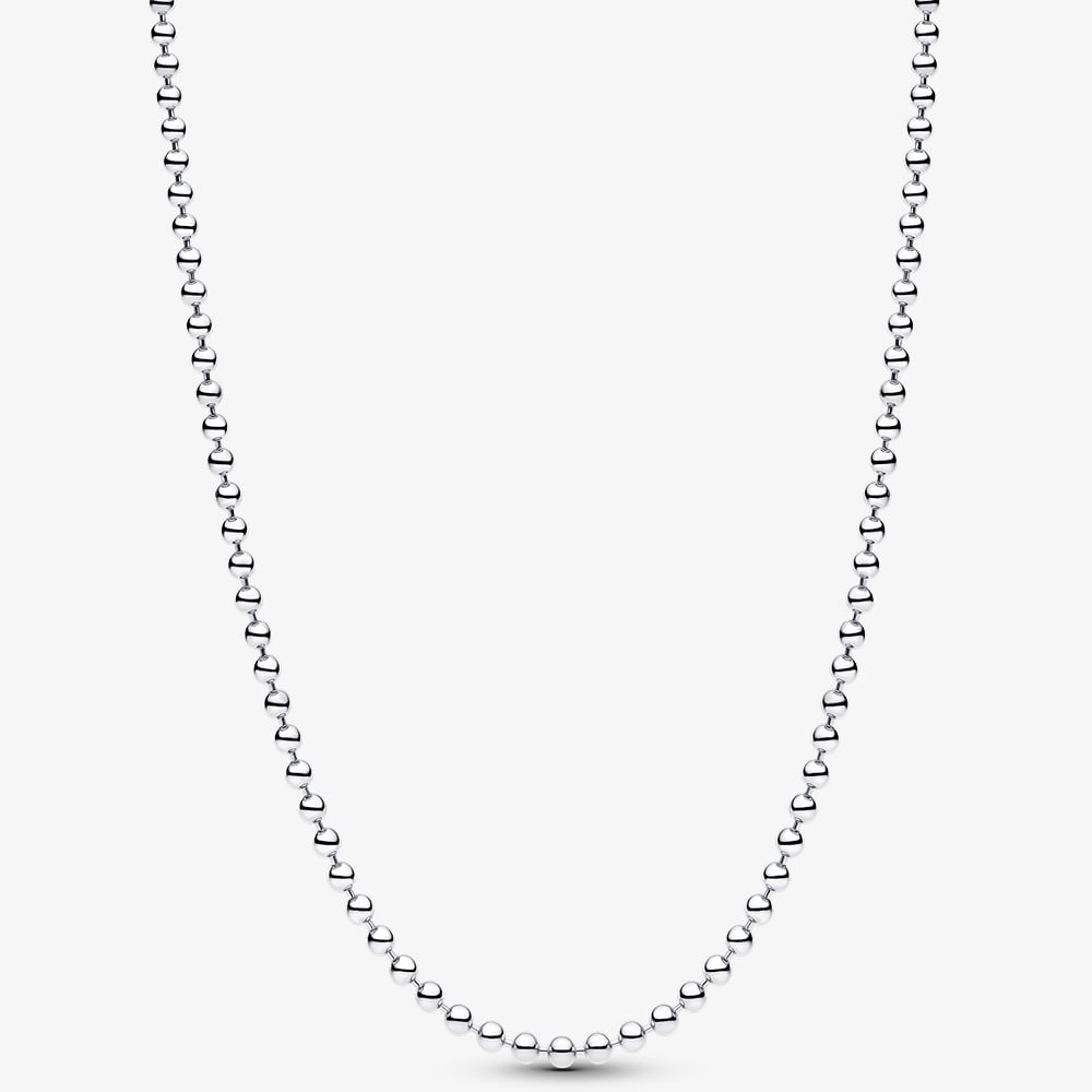 Keep it simple and stylish with the PANDORA Sterling Silver Ball Chain Necklace. Crafted from sterling silver, this 50cm ball chain is a versatile jewellery essential that can be worn alone for a minimalist look or layered for a personalised, fashionable style. Elegant, timeless, and effortlessly chic, it’s perfect for everyday wear.