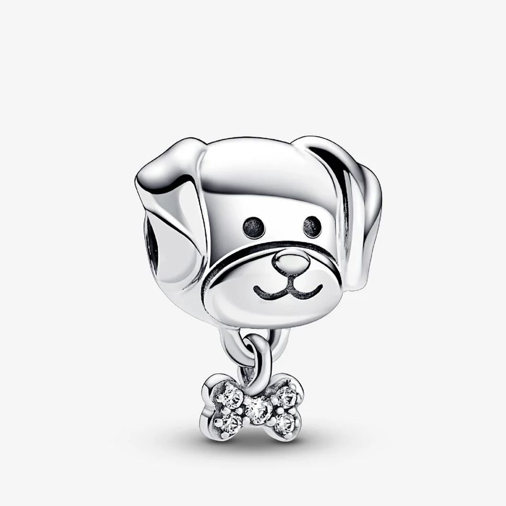 Celebrate the bond with your four-legged friend with the Pandora Sterling Silver Cubic Zirconia Dog & Bone Charm. Crafted from polished sterling silver, this charming design features an adorable dog alongside a sparkling bone, accented with shimmering cubic zirconia stones. A perfect piece for dog lovers to keep their loyal companion close at heart.