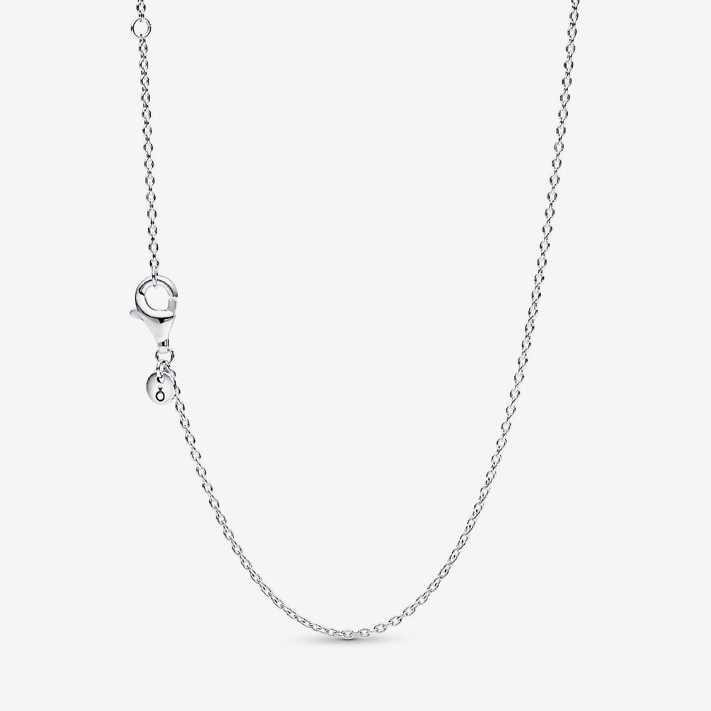 Add effortless style to your jewellery collection with this versatile sterling silver necklace from Pandora. Featuring sleek flat cable chain links, it’s perfect worn solo, layered with other pieces, or personalised with your favourite pendants. With its adjustable length, it adapts seamlessly to your look, no matter the occasion.