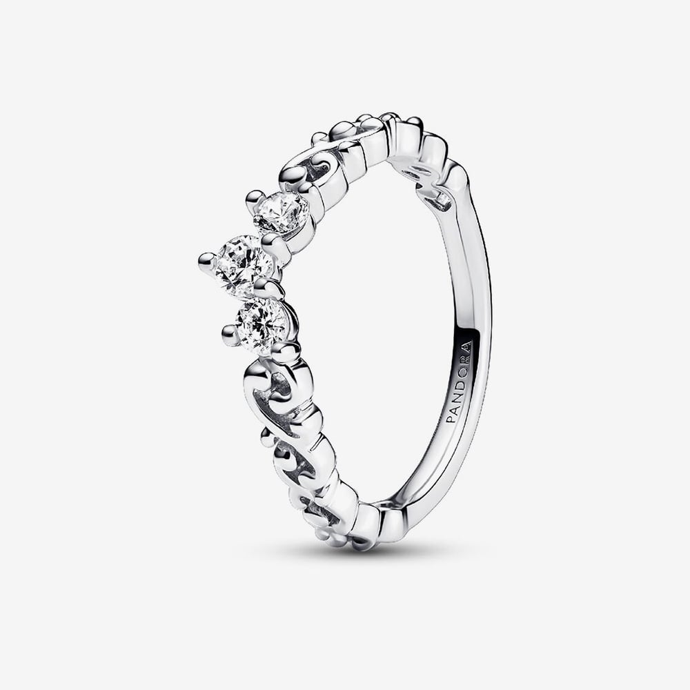 Exude elegance and royalty with the Pandora Regal Swirl Tiara Ring. Crafted in sterling silver, this aristocratic-inspired design features swirling filigree adorned with sparkling cubic zirconia, creating a delicate tiara effect. Perfect for adding a touch of sophistication and sparkle to any look.