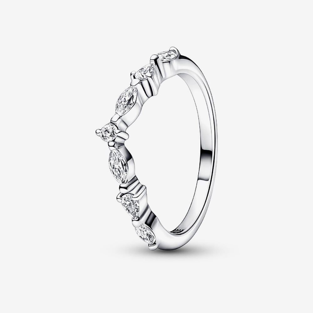 Make a statement with the Pandora Timeless Wish Sparkling Alternating Ring, a contemporary twist on classic ring styles. Crafted in polished sterling silver, the band is set with a dazzling row of cubic zirconia in round, marquise and pear-shaped cuts. Wear it alone for understated elegance, or combine with other Pandora Timeless rings to create a modern stacked look that adds sparkle to every outfit.