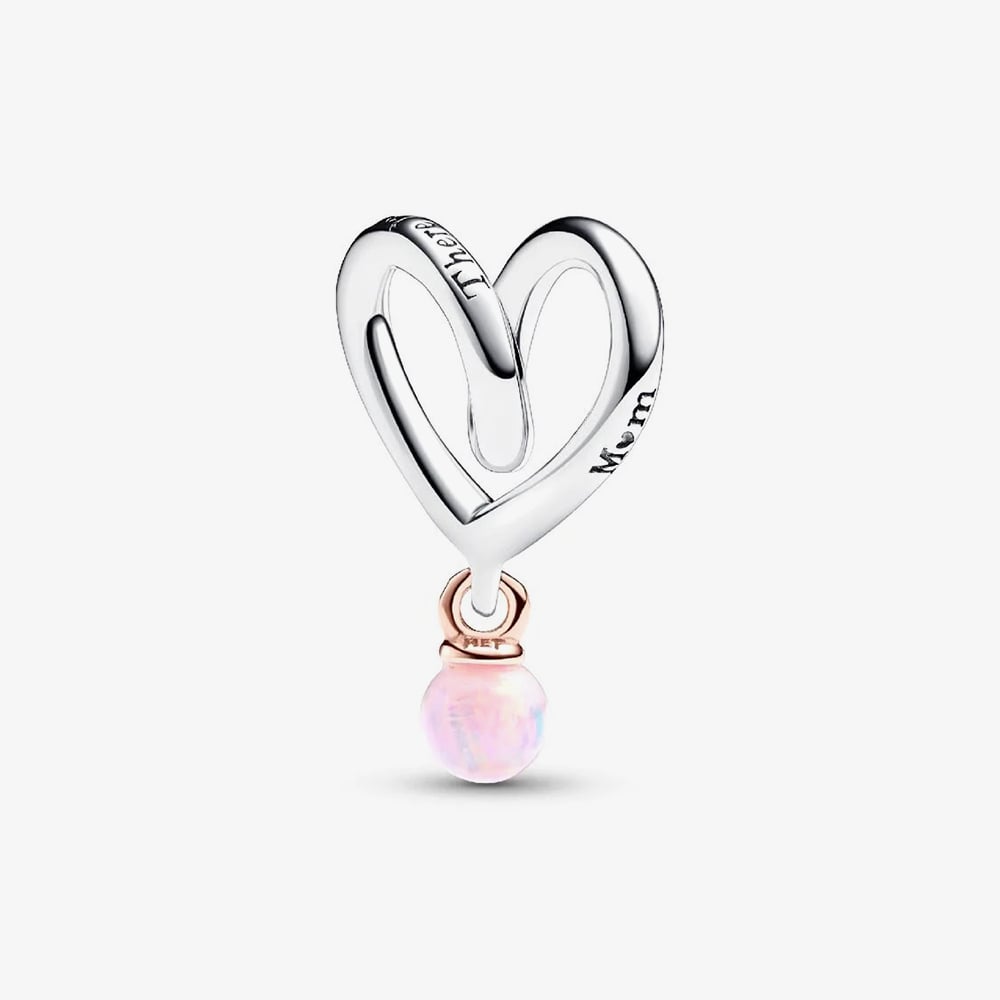 Add a touch of romance and shimmer with the Pandora Sterling Silver Two-Tone Opal Wrapped Heart Dangle Charm. Featuring a luminous opal nestled in a heart-shaped design and accented with 14ct rose gold plating, this charm beautifully symbolizes love and elegance.