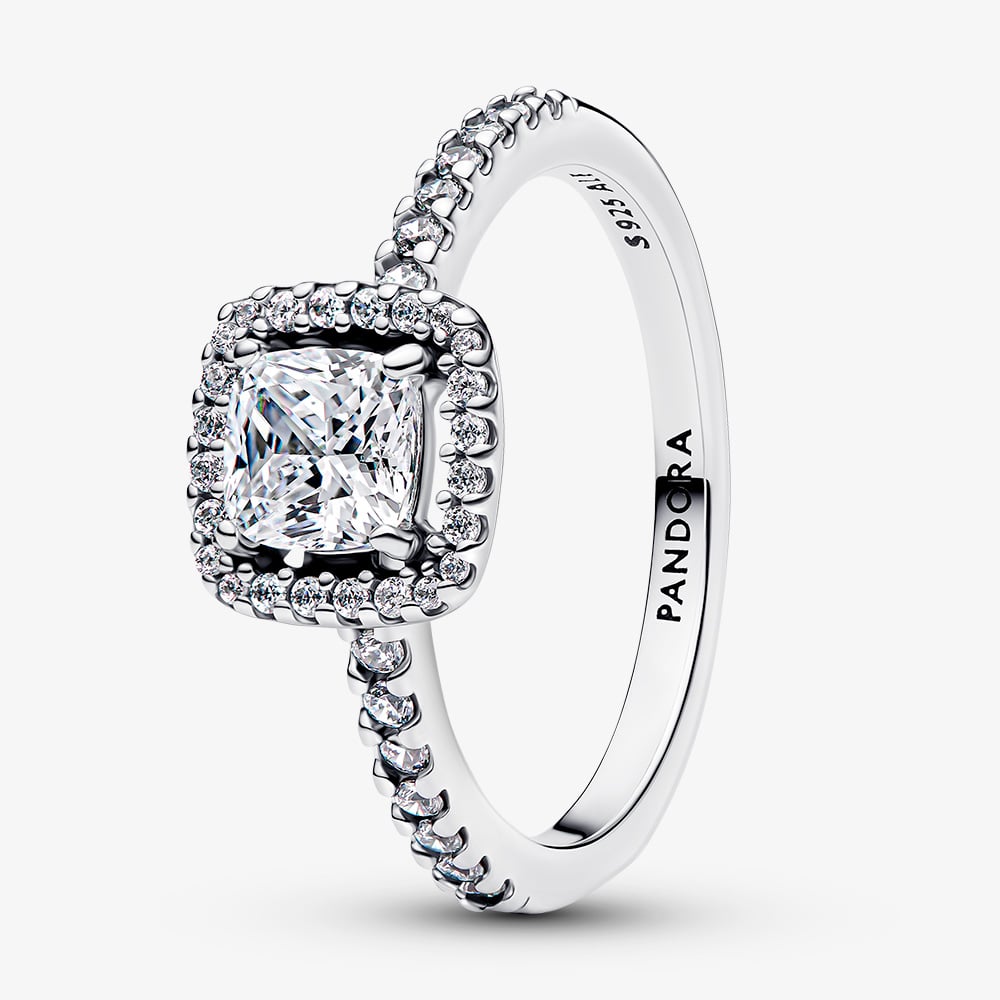 Add dazzling sparkle to any look with the Pandora Timeless Silver Sparkling Square Halo Ring in sterling silver. Expertly hand-finished for lasting brilliance, it features a large cushion-cut cubic zirconia centre surrounded by a halo of round stones, creating an extra sparkly, show-stopping design. Perfect for special occasions, everyday elegance, or as a thoughtful gift.
