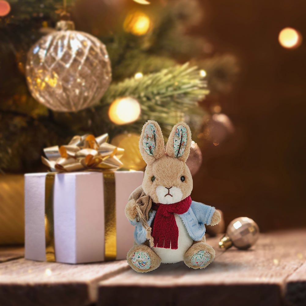 Bring festive cheer with the Peter Rabbit Christmas Soft Toy. Press his tummy to hear the classic Christmas tune, Jingle Bells, adding a touch of holiday magic to your home. This charming plush, complete with a cosy scarf and festive sack, makes a perfect keepsake for fans of all ages. Featuring authentic Beatrix Potter artwork, it beautifully brings Peter Rabbit to life.