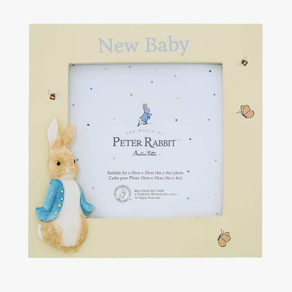 Celebrate a new bundle of joy with this Peter Rabbit New Baby Photo Frame, the perfect way to showcase a treasured photo. Featuring original illustrations from Beatrix Potter’s classic tales, this charming frame adds a touch of timeless storytelling to any nursery. Designed to fit square-sized photos and presented in a Beatrix Potter branded gift box.