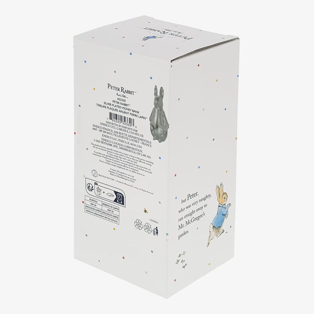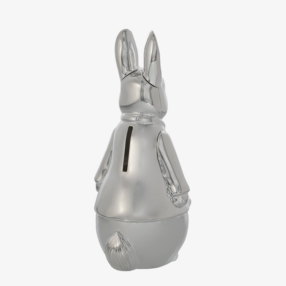 Celebrate a new arrival in timeless style with the Peter Rabbit Sculpted Money Box. Silver-plated and beautifully detailed, this charming money box is perfect for storing little treasures, making it an ideal Christening or new baby gift. Its classic design also adds a delightful decorative touch to any nursery, creating a keepsake that parents and children will cherish for years to come.
