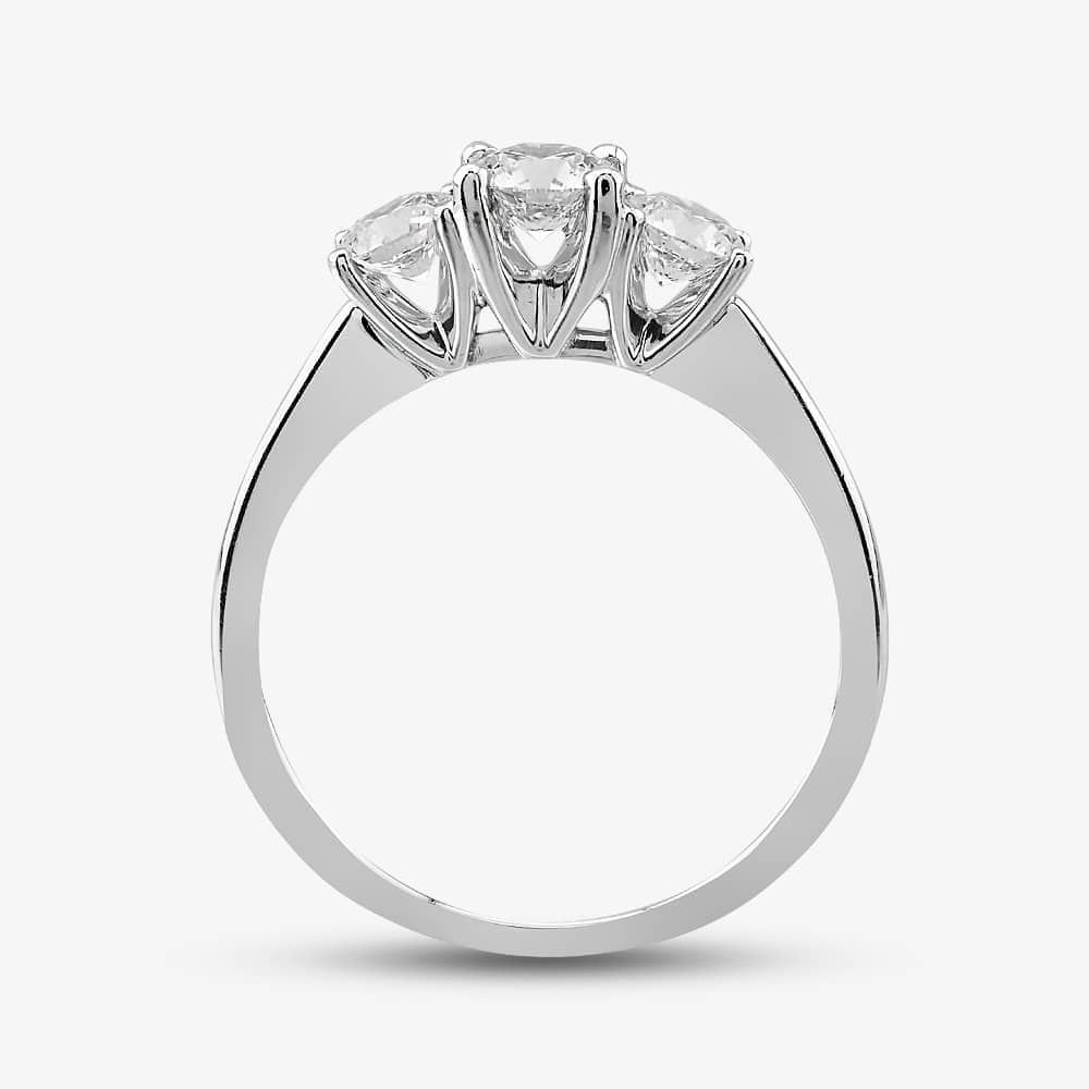 This stunning three-stone ring is a timeless classic that will never go out of style. Delicately crafted from platinum, the simplistic design features three white brilliant-cut diamonds set in a four-claw central setting. The diamonds sparkle and shine, and with a total diamond weight of 0.54ct, it’s sure to turn heads. This ring is the perfect way to show your love and commitment.