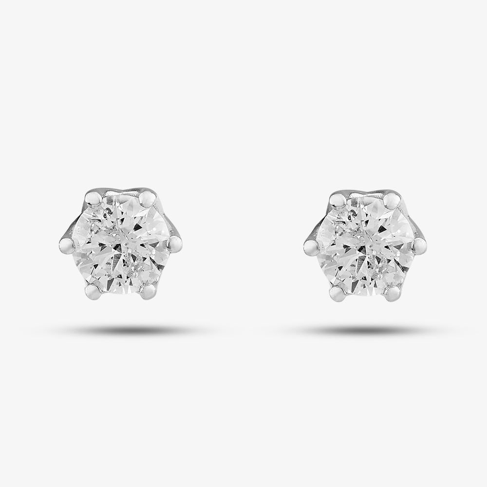 This stunning pair of platinum single stone stud earrings are set with a six-claw setting and a total of 0.50ct white diamonds fastened with a butterfly backing. Whether worn for a special event or to enhance your everyday style, these earrings are a timeless symbol of luxury and grace.