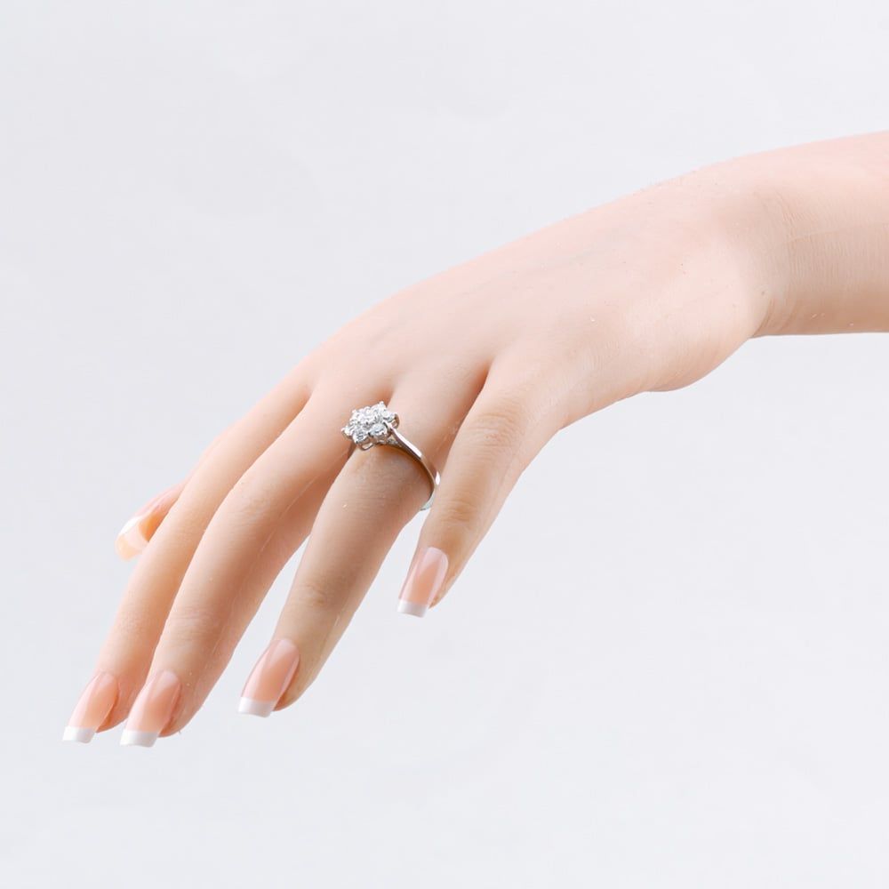 This exquisite Platinum Daisy Cluster Ring showcases a captivating 1.00ct (approx.) arrangement of multi-cut diamonds, beautifully set to create a radiant floral design. Crafted in luxurious platinum, this ring exudes timeless elegance and sparkle, making it a perfect choice for those who appreciate classic beauty with a modern touch.
