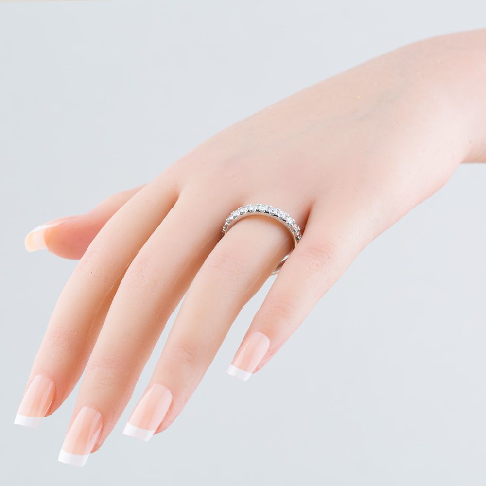 Crafted with a touch of simplicity, this full-eternity ring exudes timeless elegance. Delicate platinum embraces 1.90ct of brilliant-cut white diamonds, nestled securely in a classic four-claw setting. The perfect accompaniment for any special occasion, this ring promises to leave a lasting impression.
